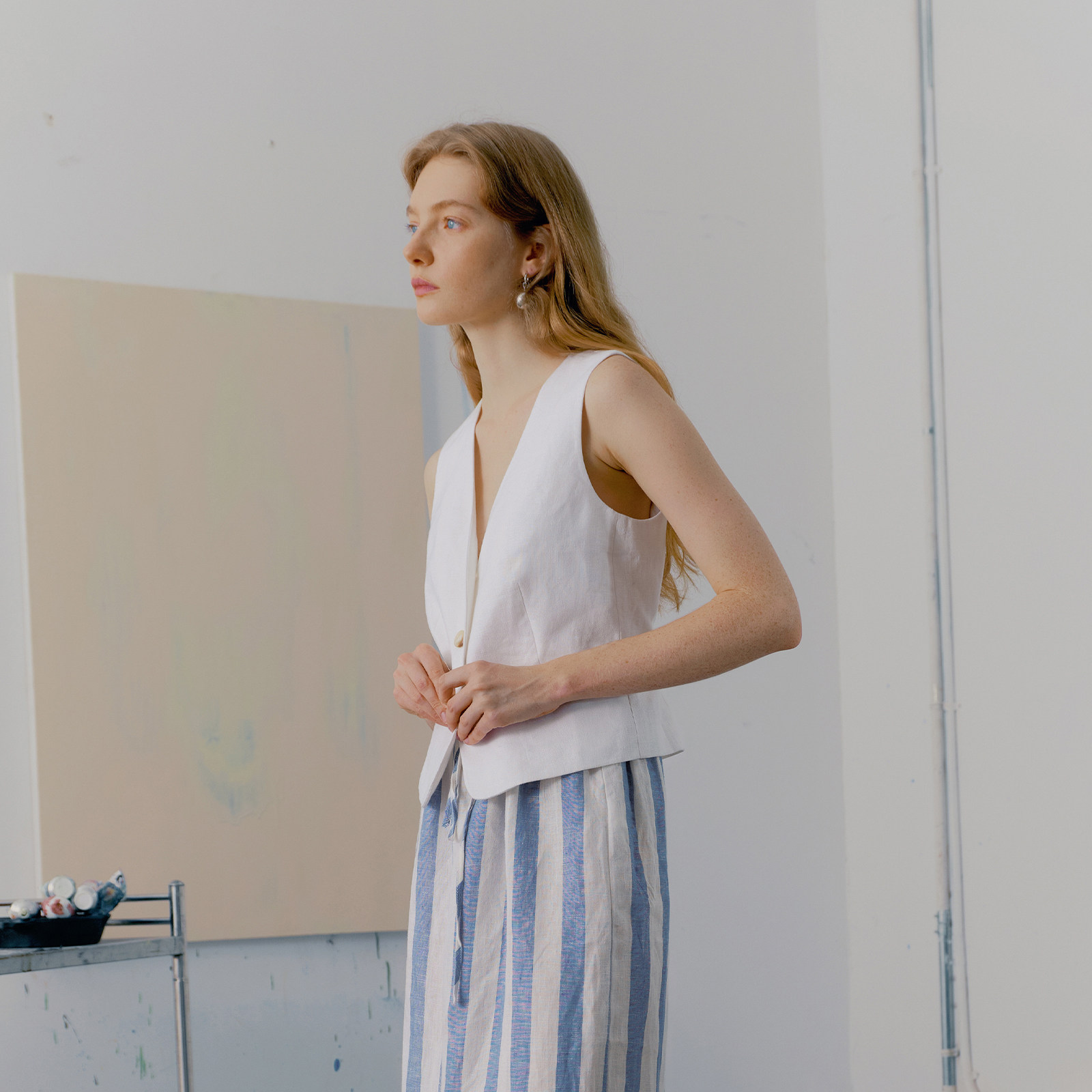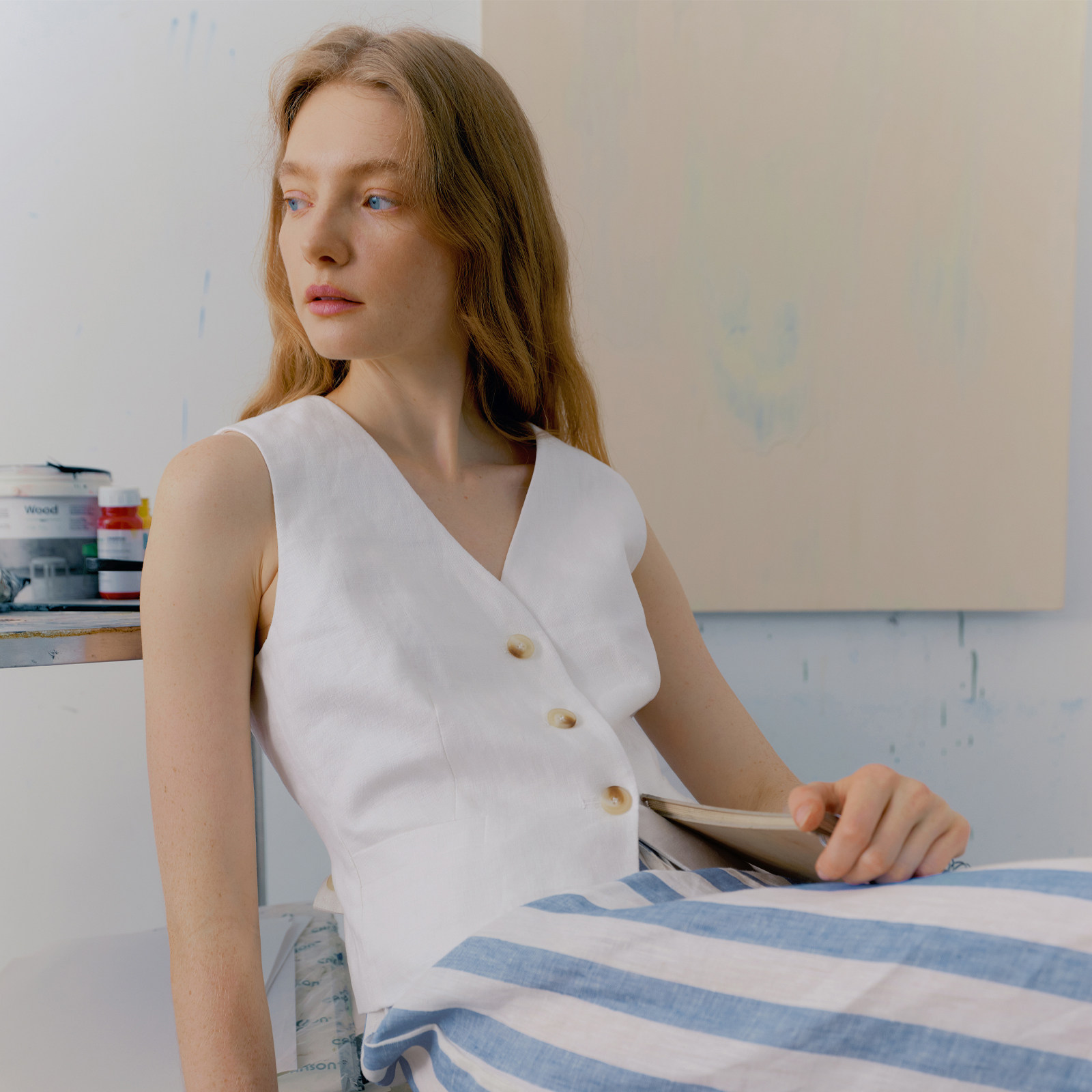 wana try100%亚麻马甲上衣新款老钱风清冷感马夹职场通情女装内搭