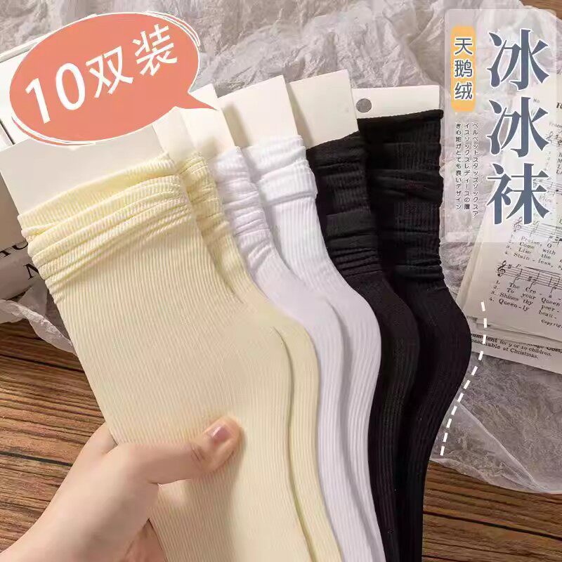 网红热销女袜冰冰袜春夏薄堆堆袜天鹅绒中筒ins潮袜纯色冰凉一夏