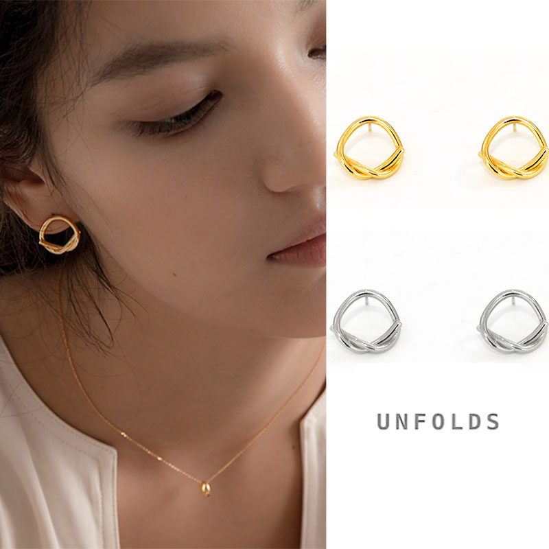 现货美国Unfolds结扣925银耳钉女小众高级感个性冷淡风设计感耳饰