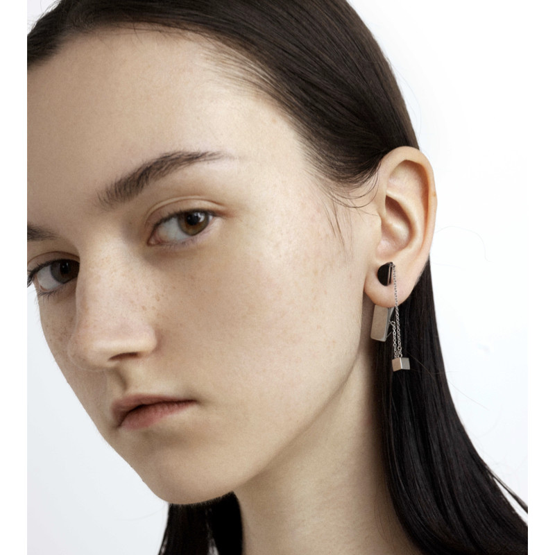 此沙同款链条耳环原创黑色情侣男女款耳环小众设计感高级时尚感