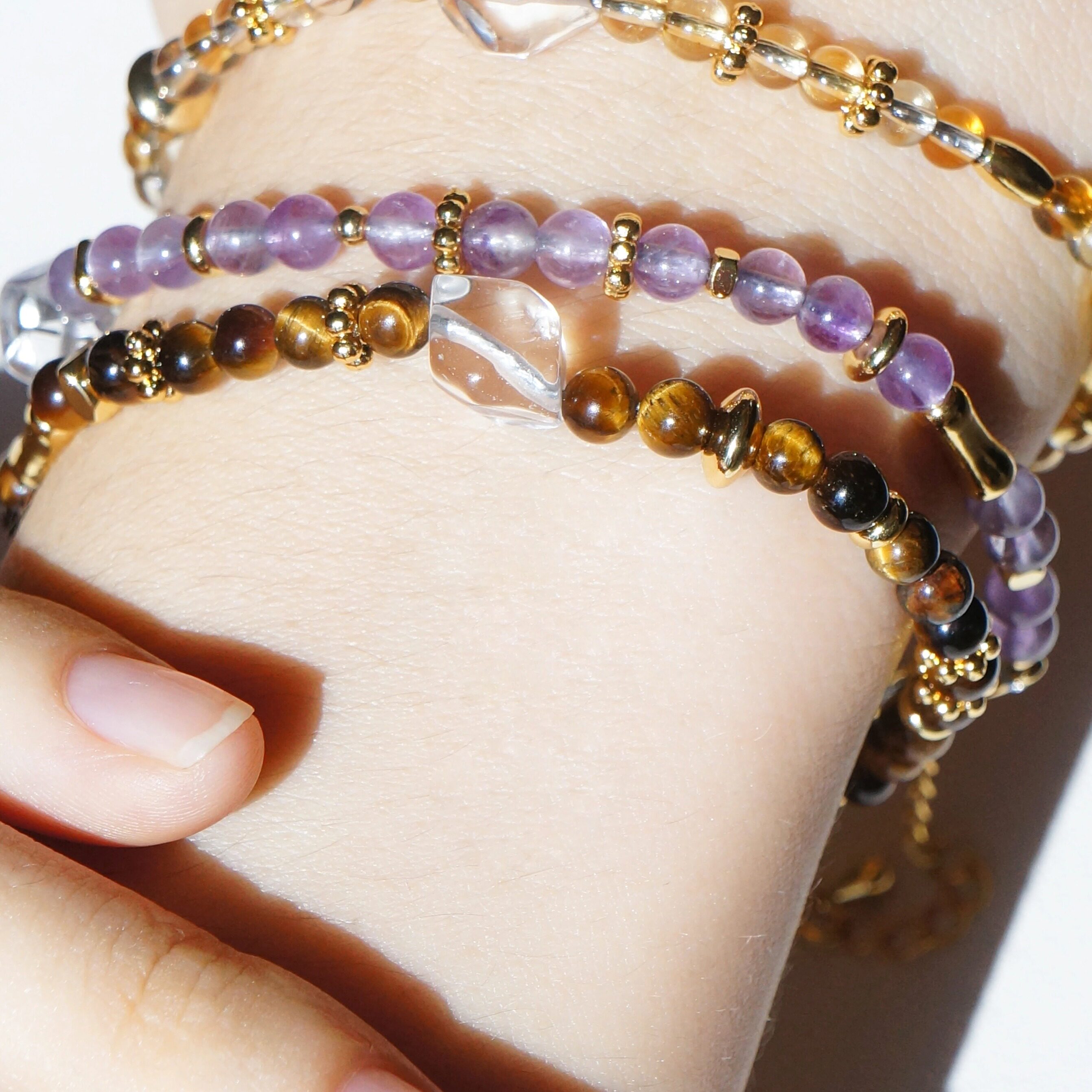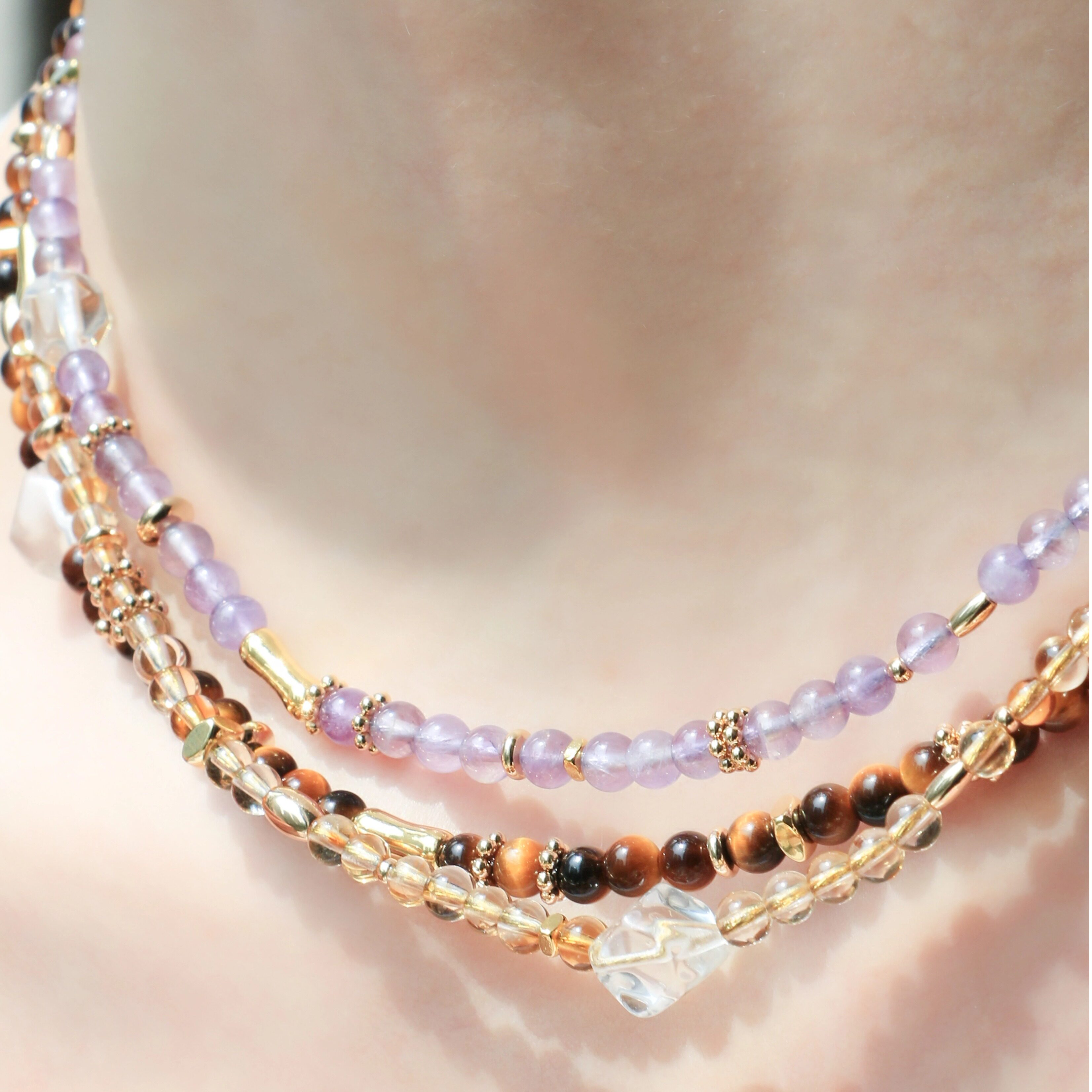 xhenxhen天然水晶手链/项链紫水晶白水晶黄水晶原创女手串高级感