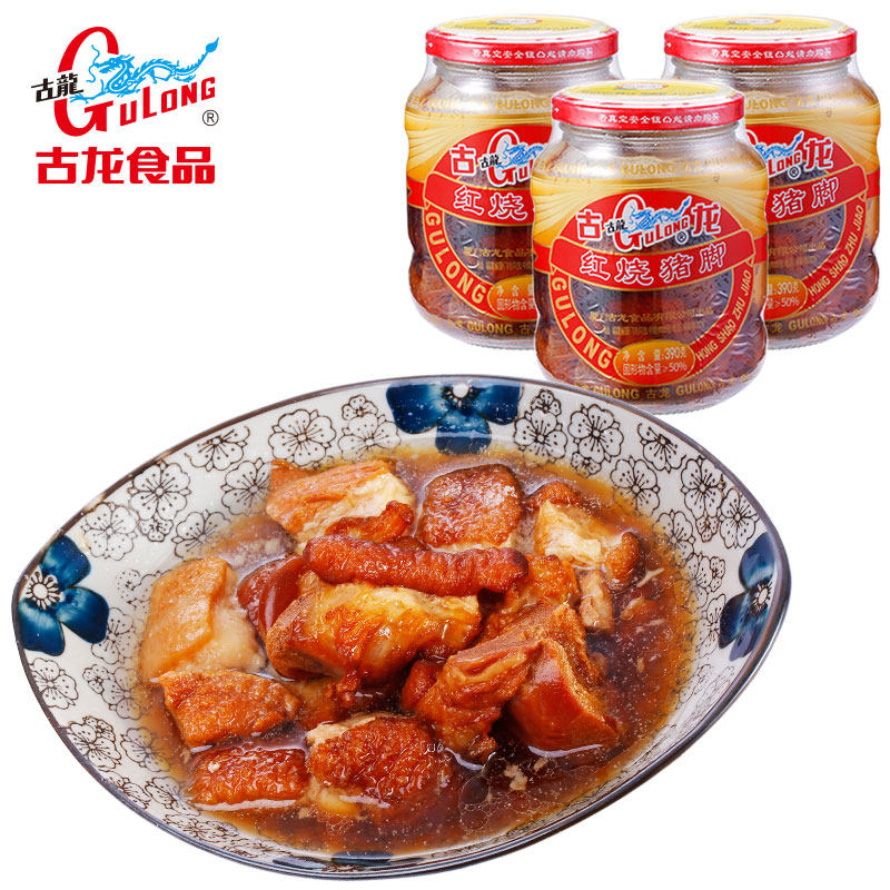 古龙红烧猪脚罐头390g*3罐酱香猪蹄熟食卤猪肉排骨即食储备食品