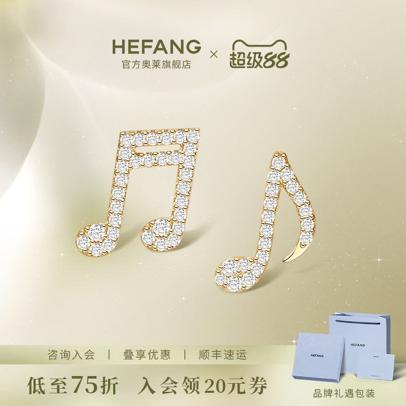 HEFANG何方珠宝奥莱限定音符耳钉高级感轻奢耳环耳饰女生日礼物