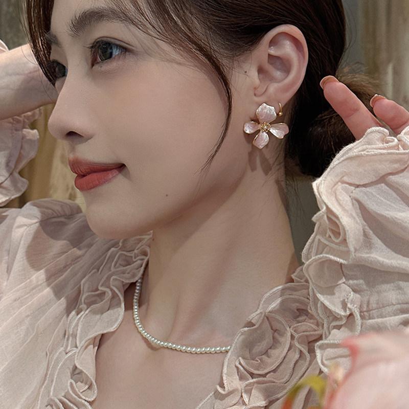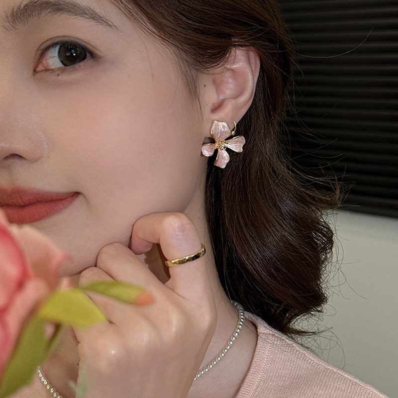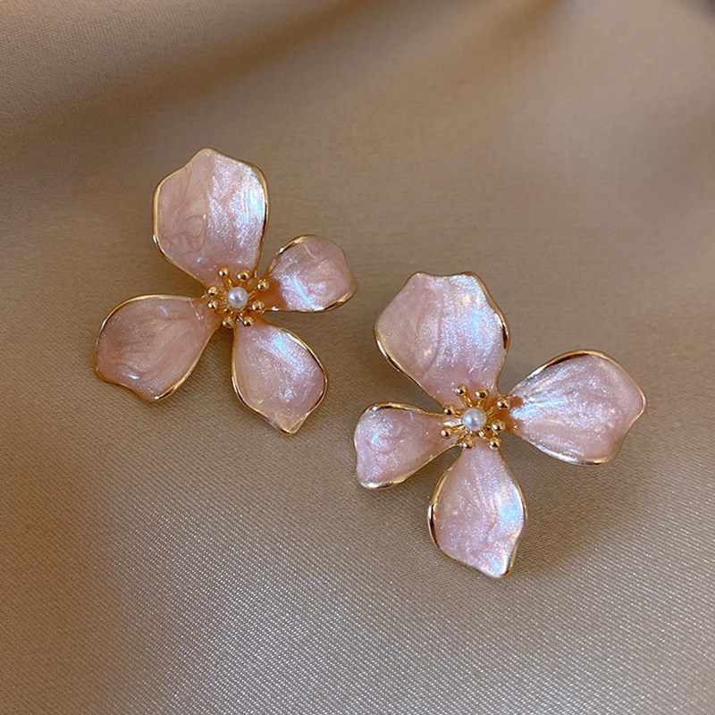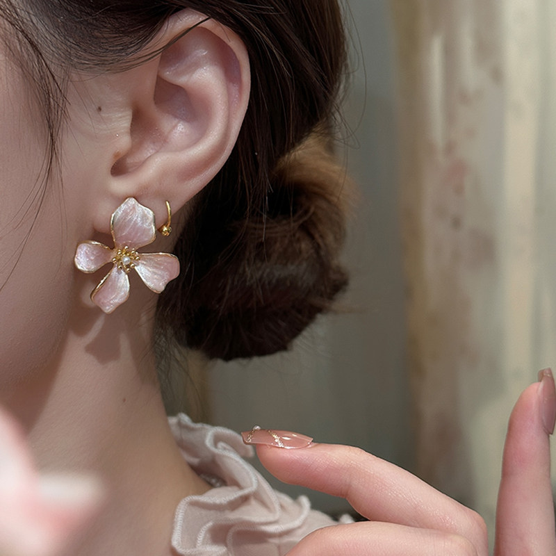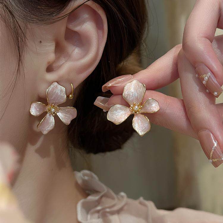粉色花朵耳环2025新款爆款夸张耳钉轻奢高级感小众独特气质耳饰女