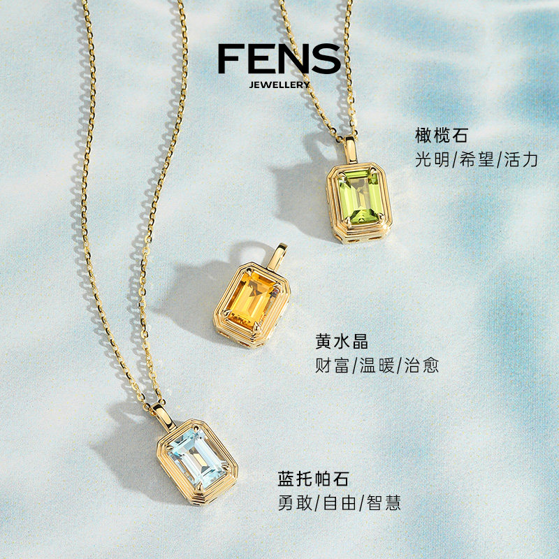 FENS珠宝 方糖18K金宝石项链托帕石橄榄石彩宝套链