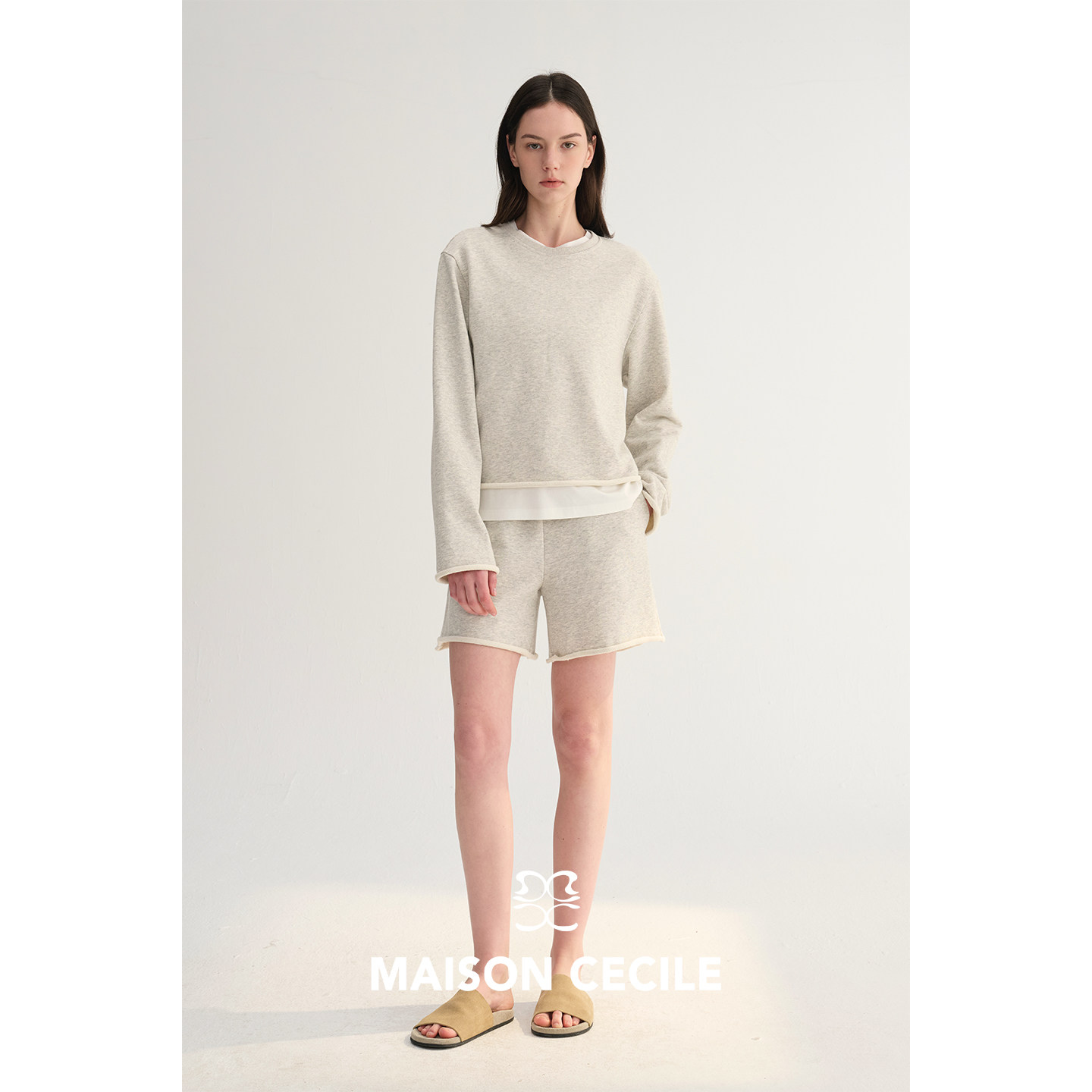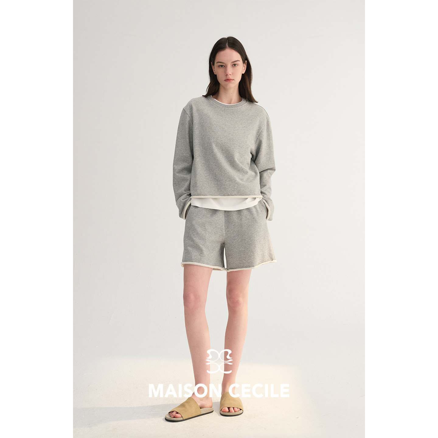 MC两色|高支棉感舒适松弛感休闲懒人卷边运动套装MAISON CECILE