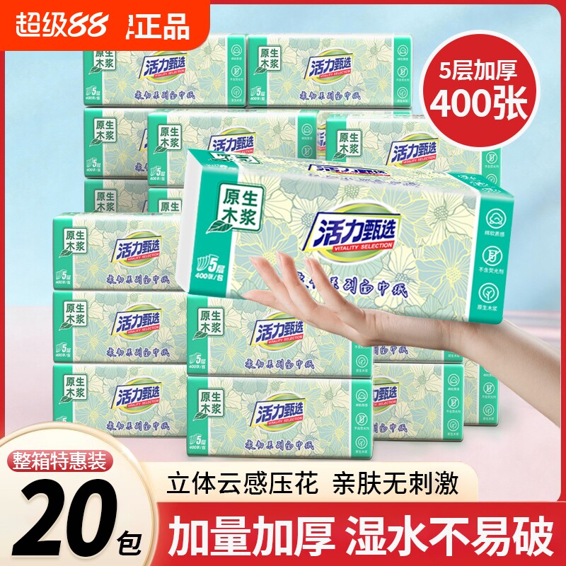 活力甄选纸巾抽纸20大包家用餐巾纸卫生纸面巾纸擦手整箱实惠装28
