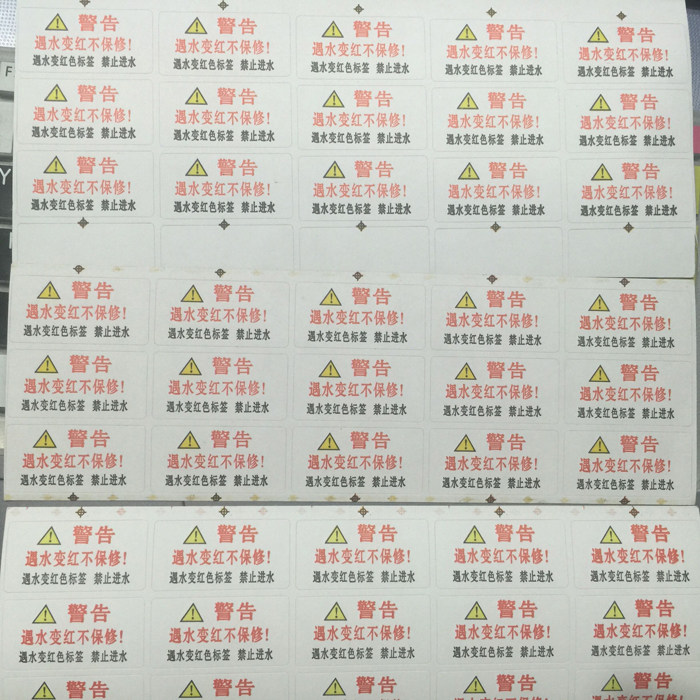 可定制遇水变红色印刷标签进水不保修水感纸电池手机防伪实验测试
