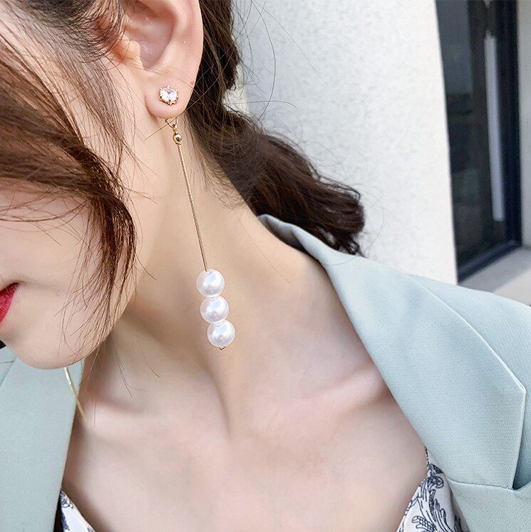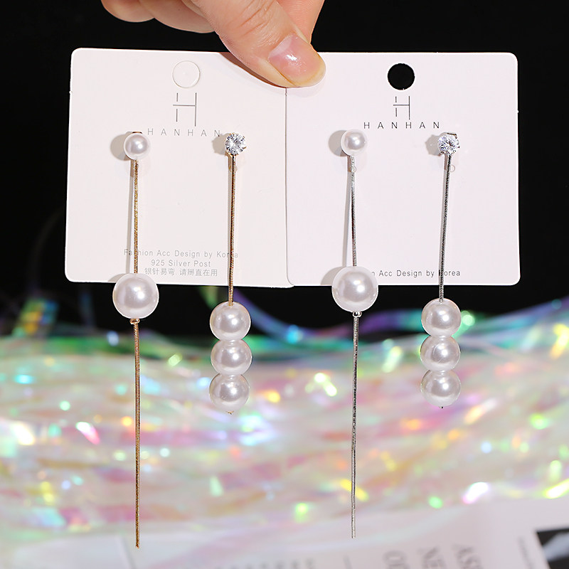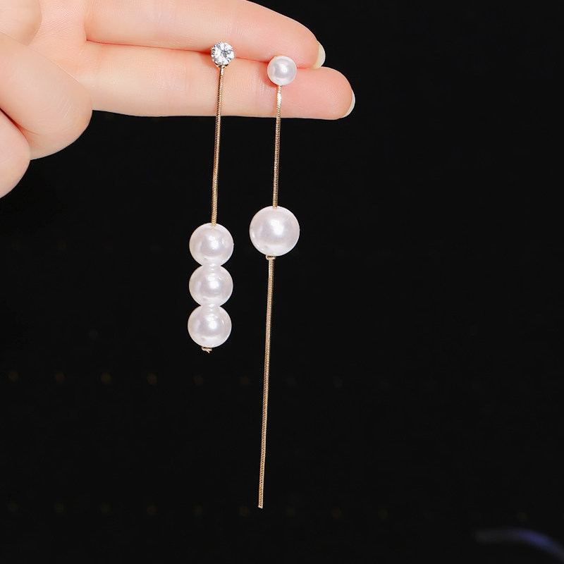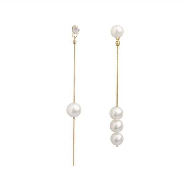 韩国东大门气质百搭亮钻珍珠耳环时尚不对称长款耳坠显脸瘦耳线女