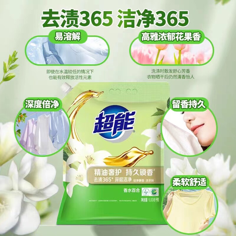 超能洗衣粉1.01kg家用实惠装2斤装倍净飘香香水百合洗衣服粉包邮