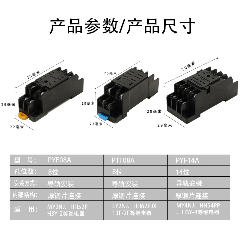 小型中间继电器底座8脚14脚配MY2NJ LY2NJ MY4NJ电磁继电器底座
