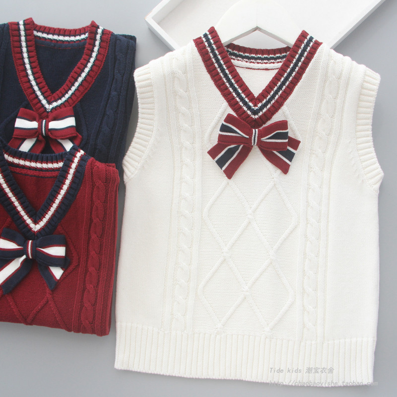 女童加绒马甲坎肩春秋纯棉学院风儿童毛衣中大童女孩洋气针织背心