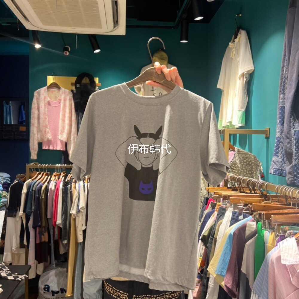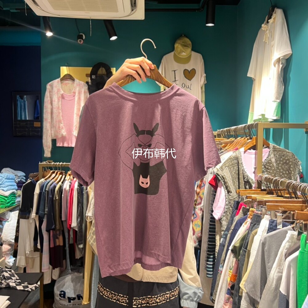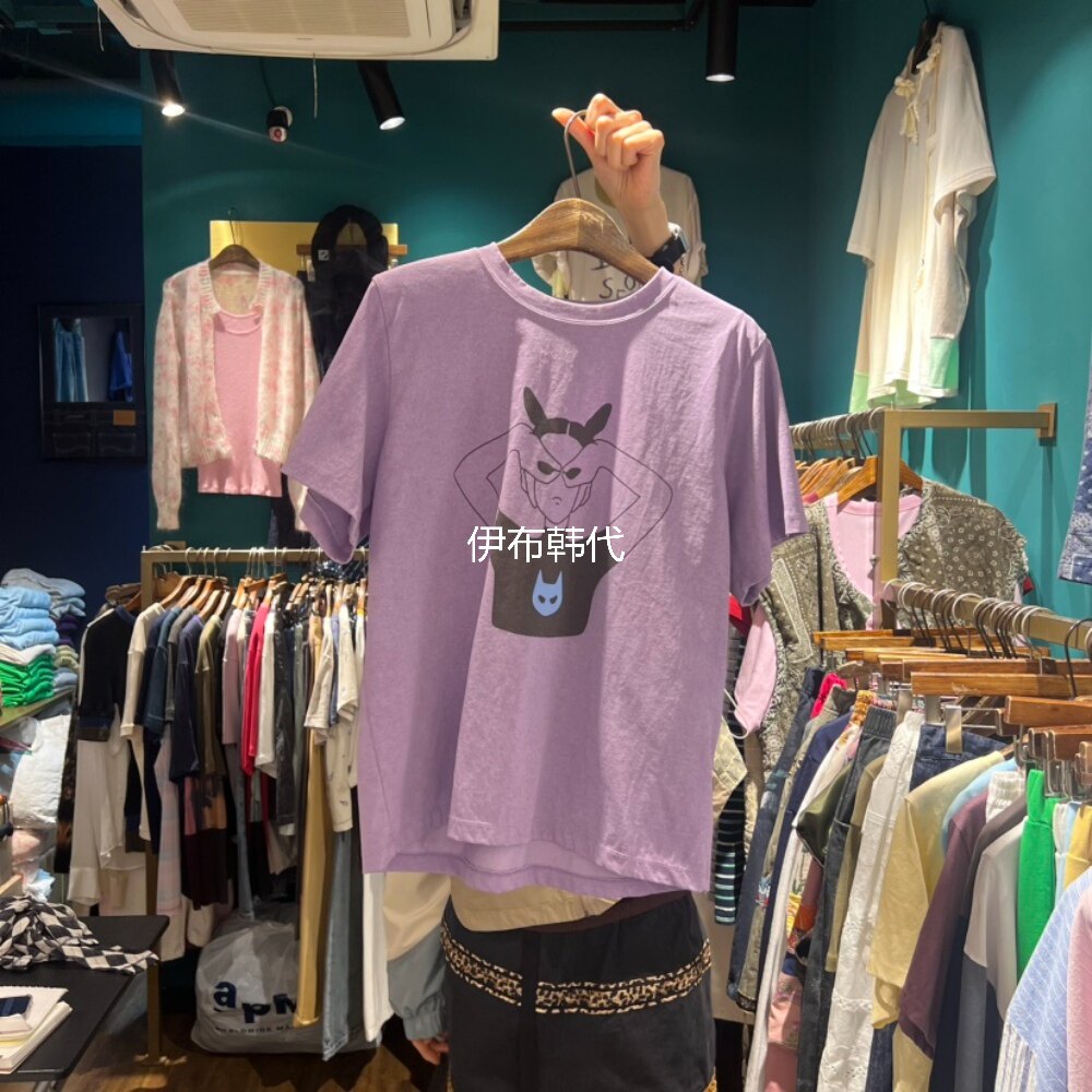 MERCI LINDA韩国东大门代购26春款 圆领水洗做旧蝙蝠女孩短袖T恤