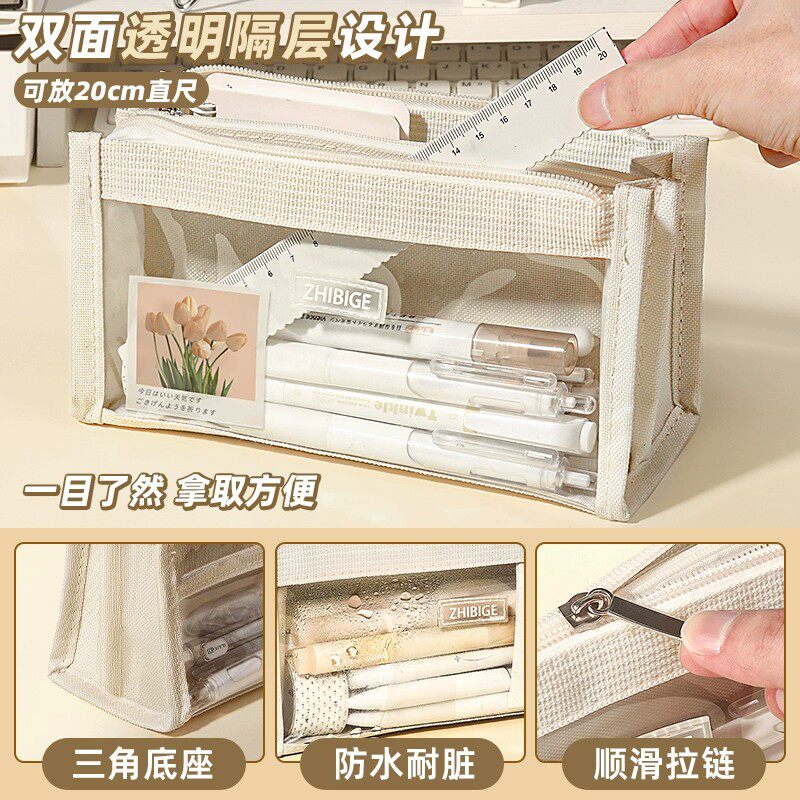 大容量透明笔袋女孩款文具盒初中生高中铅笔盒男女生文具袋高颜值