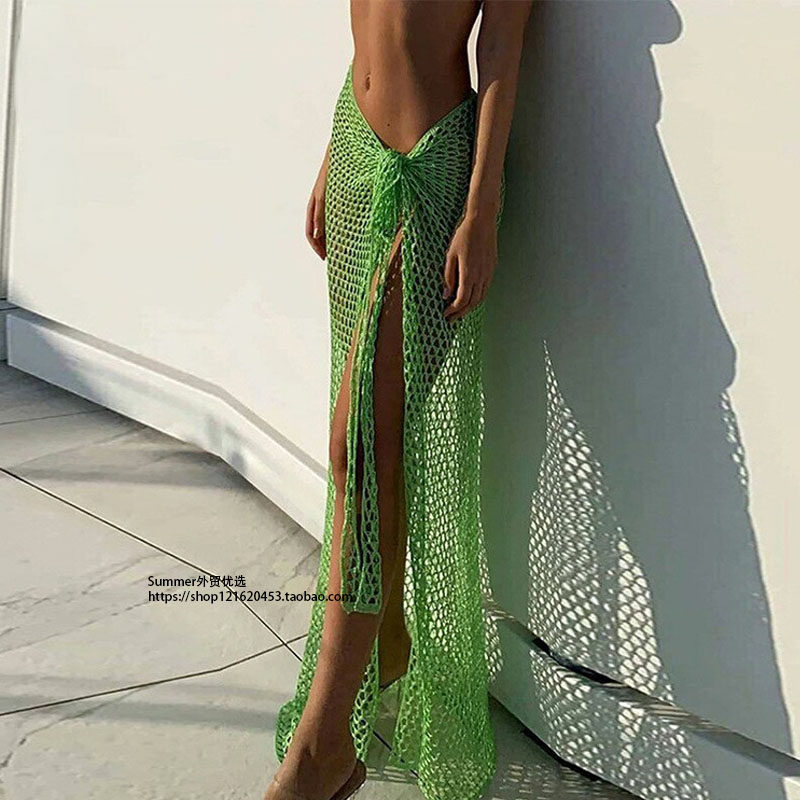 镂空长款沙滩裙针织半身裙度假长裙 Cut-out lace-up beach dress