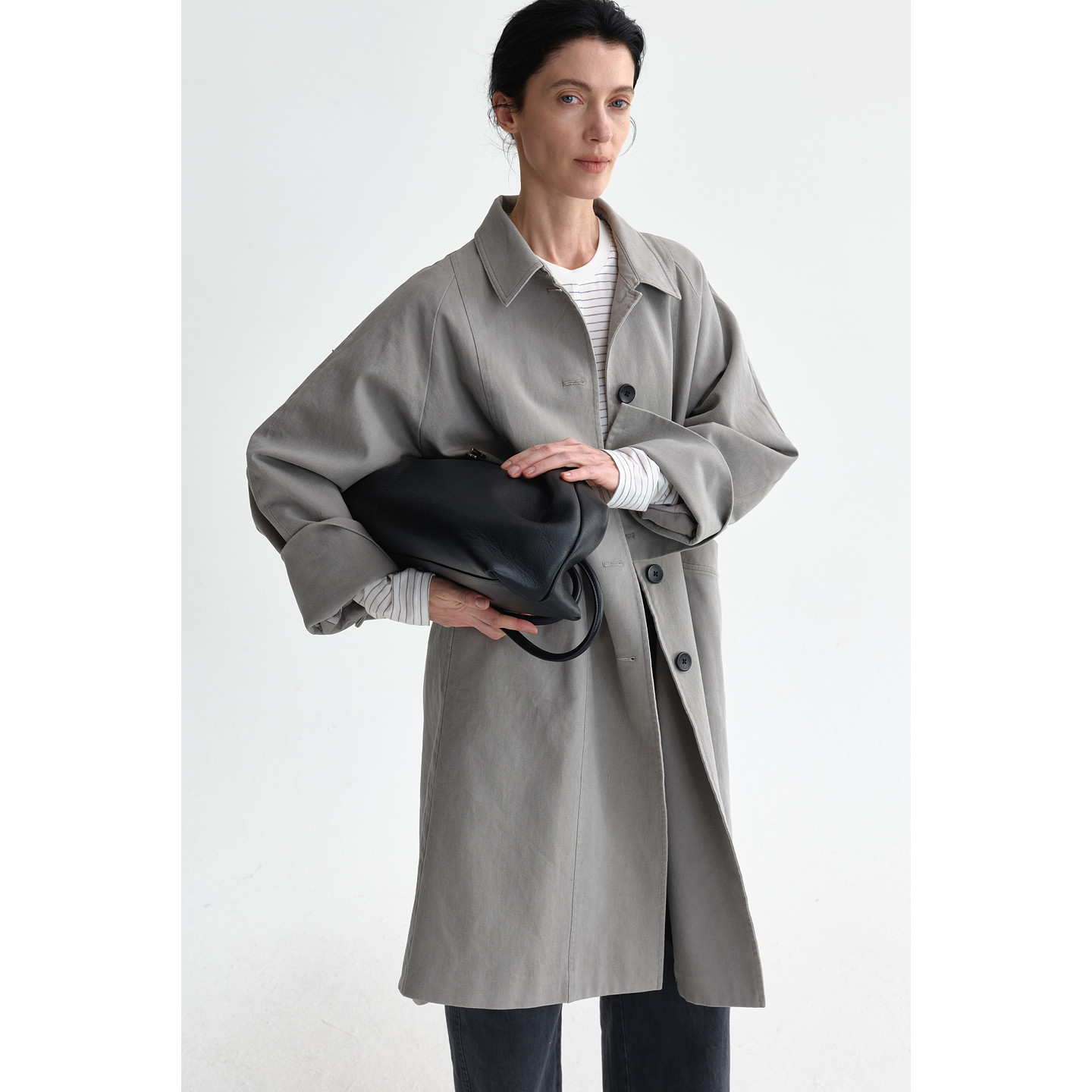 PLANITES精梳棉酵素水洗 宽松做旧翻袖风衣