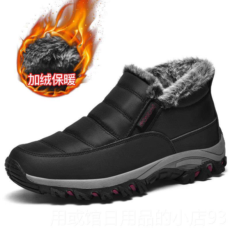 正品冬季老人棉鞋男士爸爸运绒动鞋加厚保暖雪老地靴防滑加中年健
