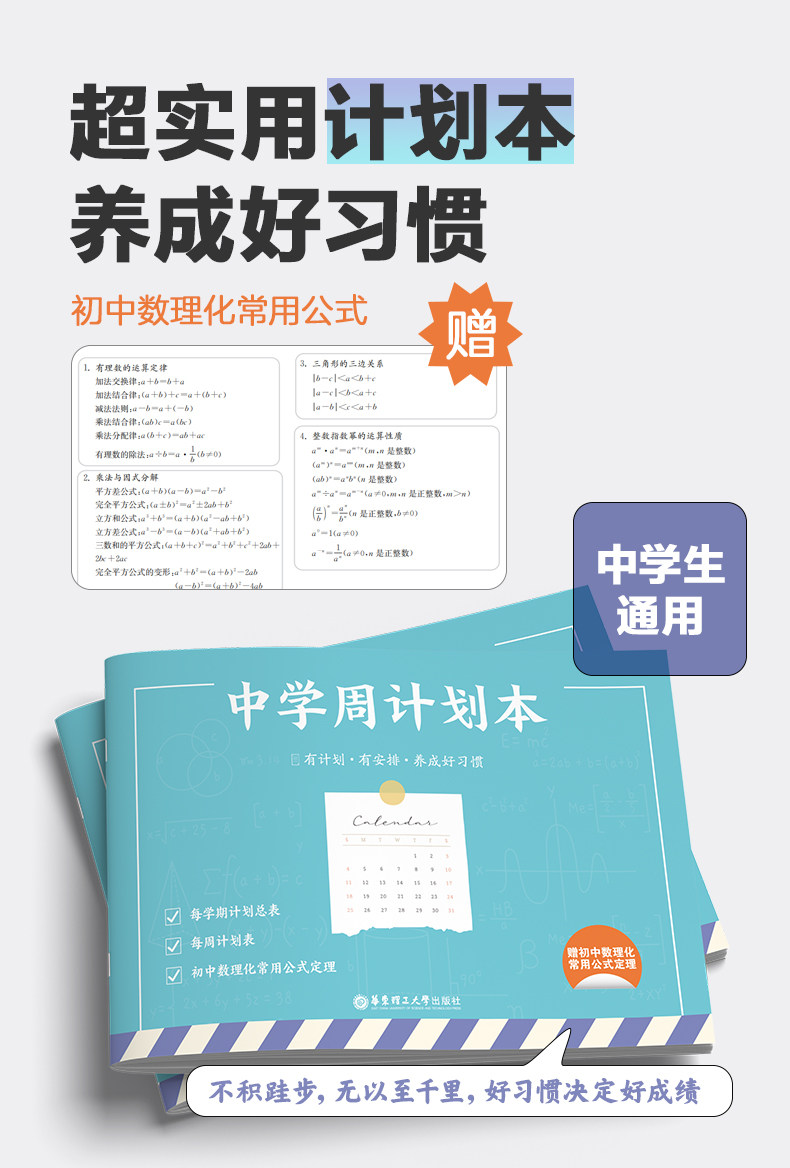 中学周计划本 赠初中数理化常用公式定理 每学期计划总表每周计划表 有计划 有安排 养成好习惯 提升学习效率 华东理工大学出版社