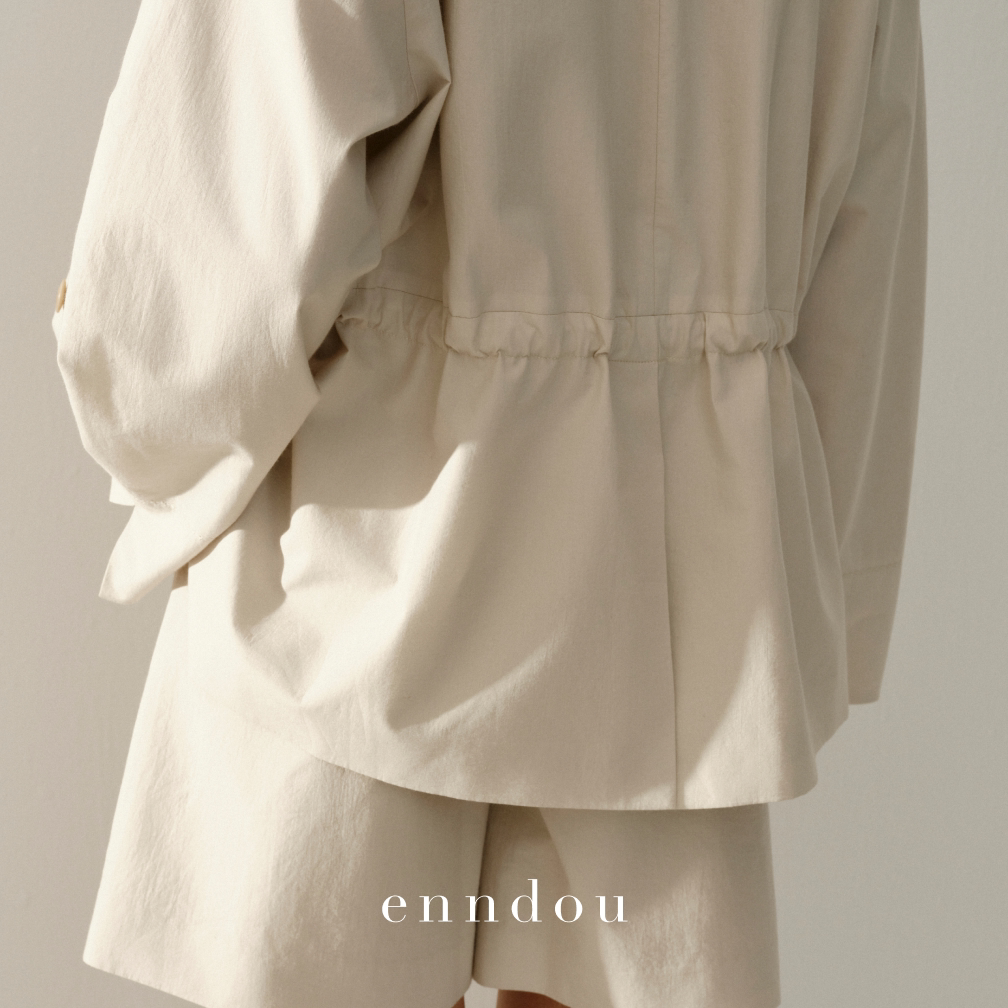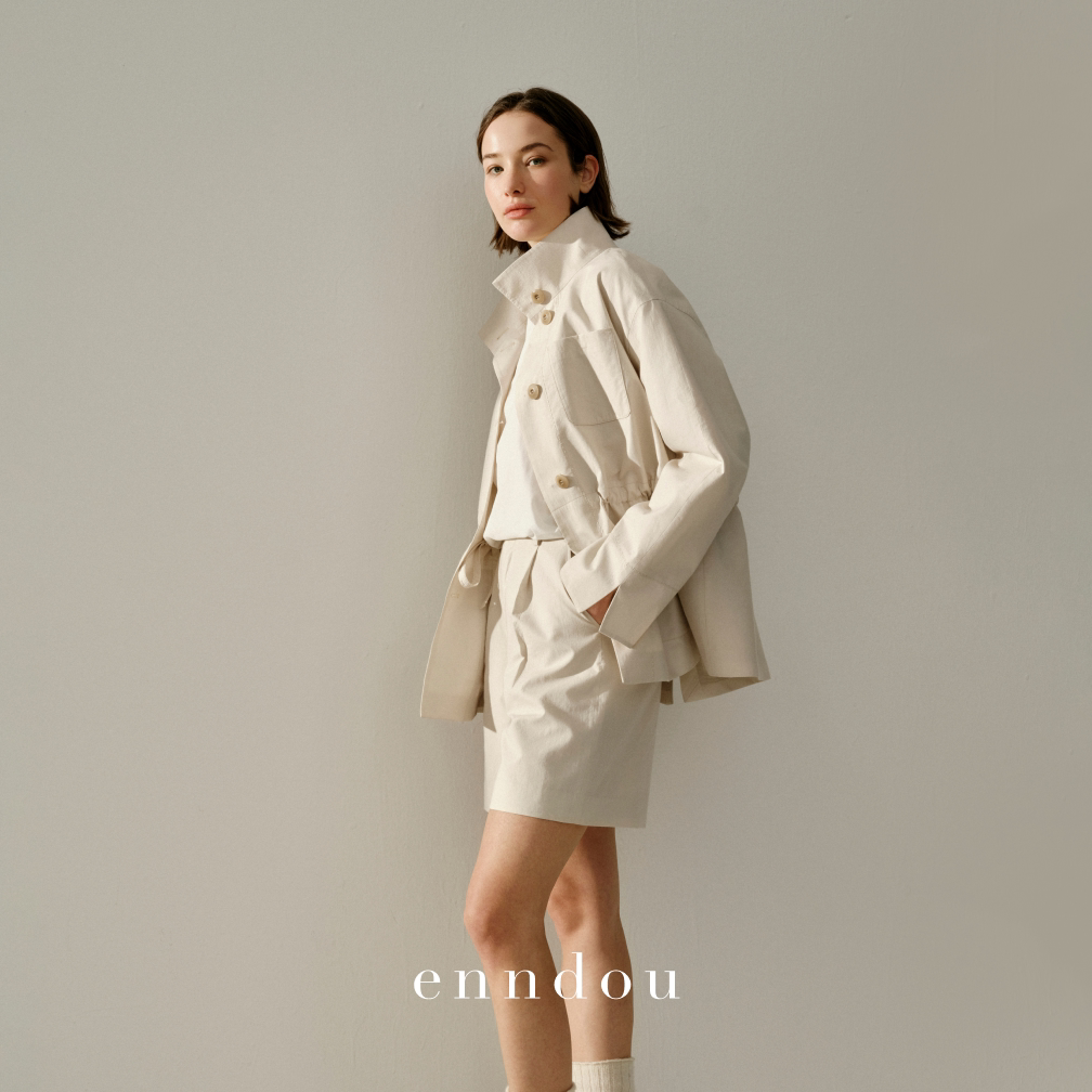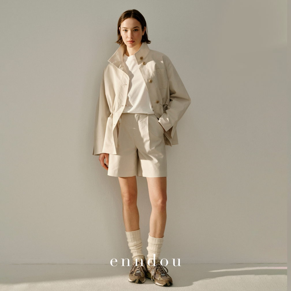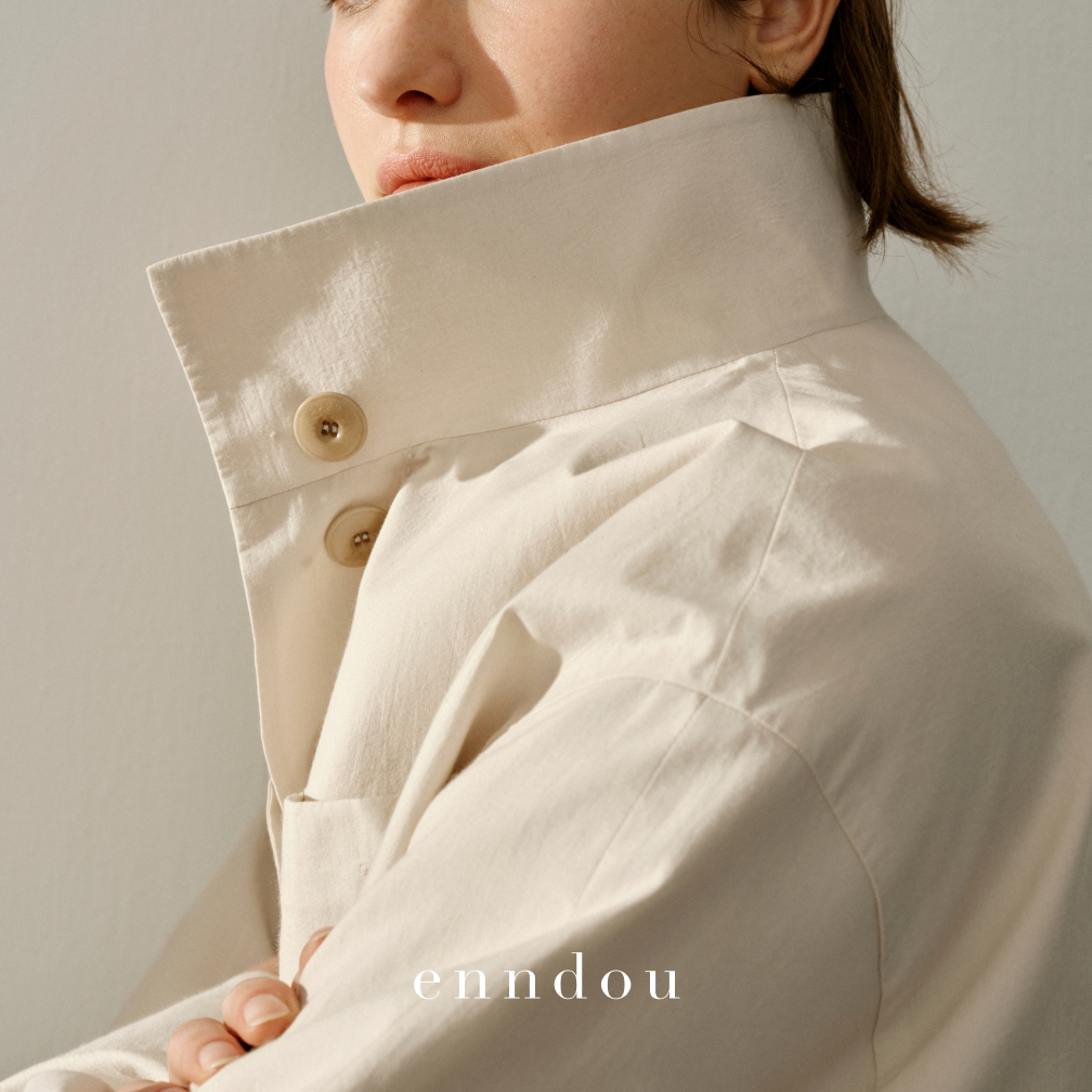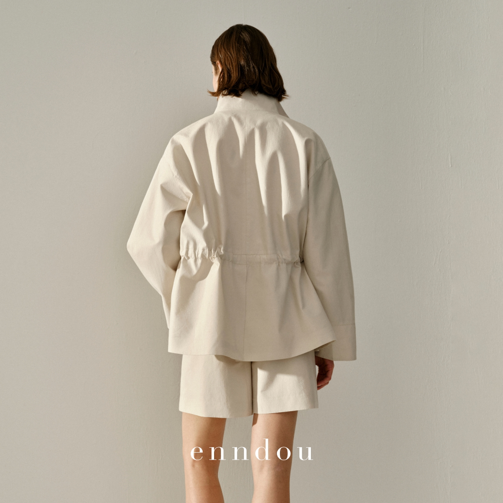 enndou2026春装新款120支匹马棉立领抽绳薄款大衣原创设计感外套