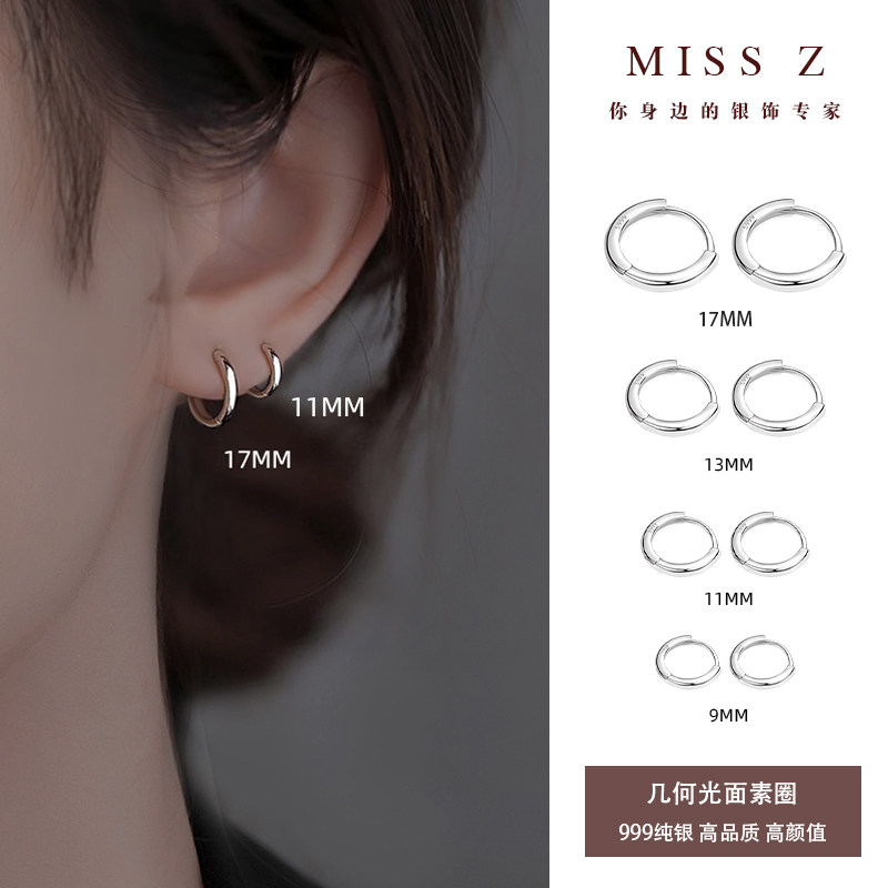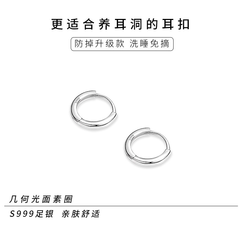 Z小姐999足银素圈耳环养耳洞耳扣小众圆圈耳骨环耳饰男女2024新款