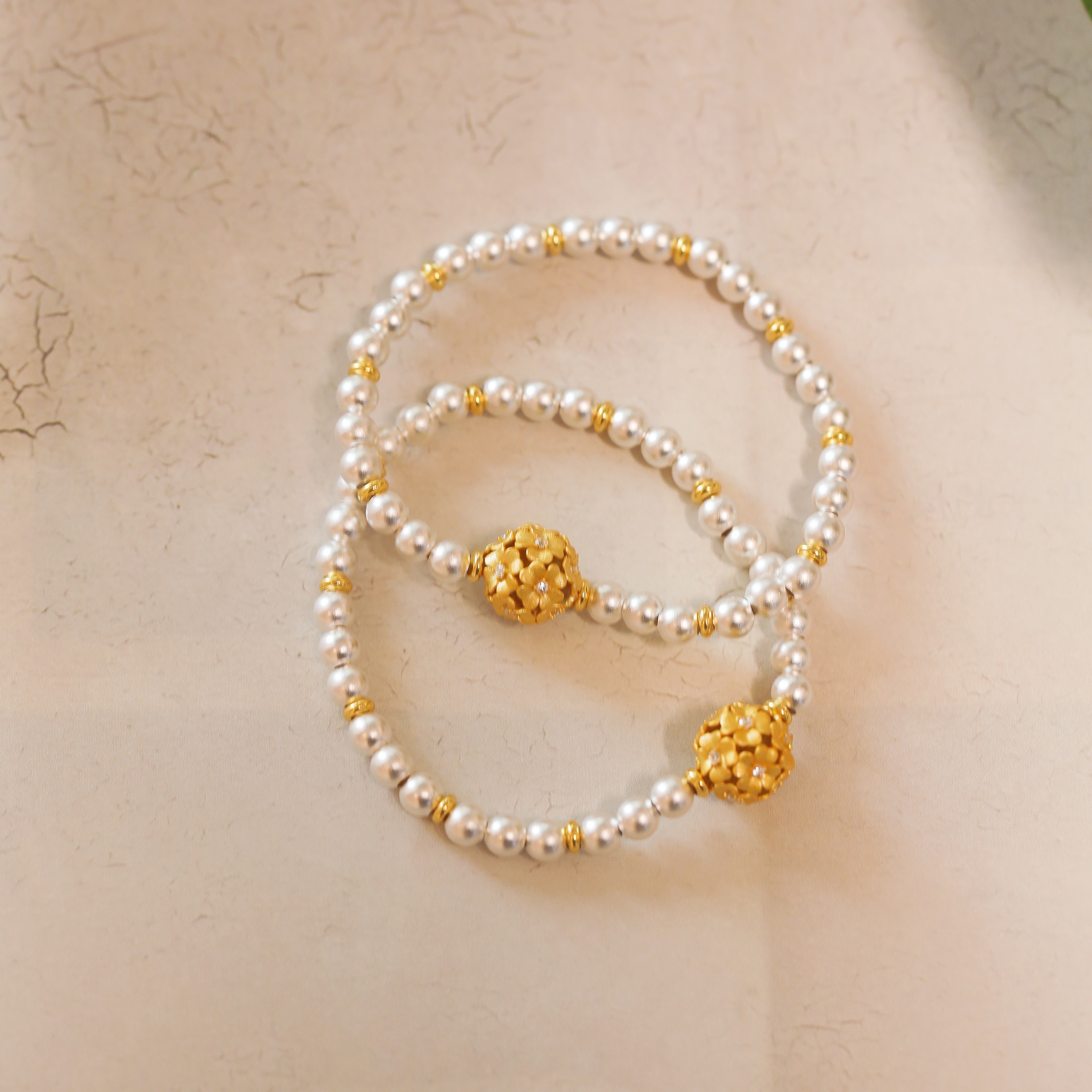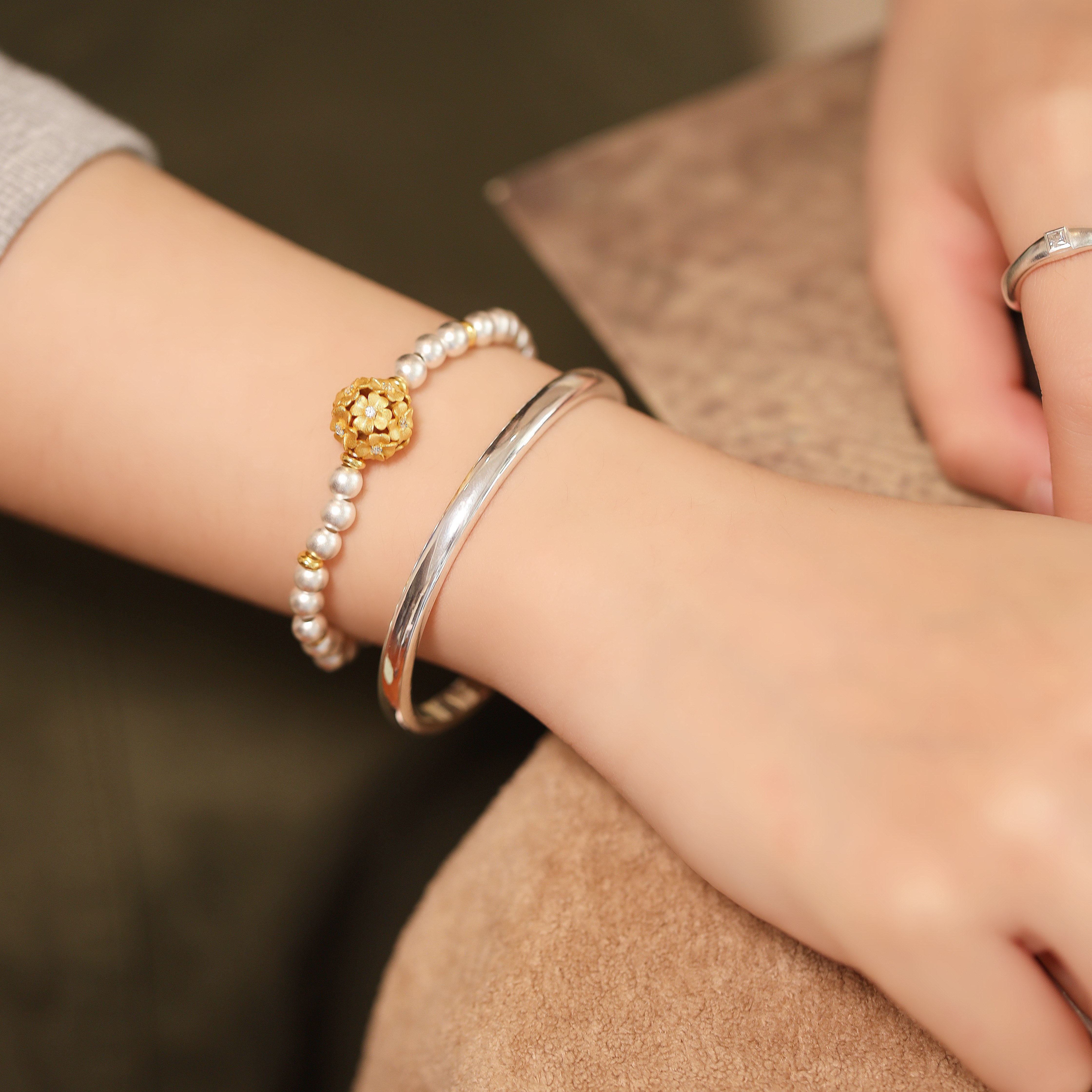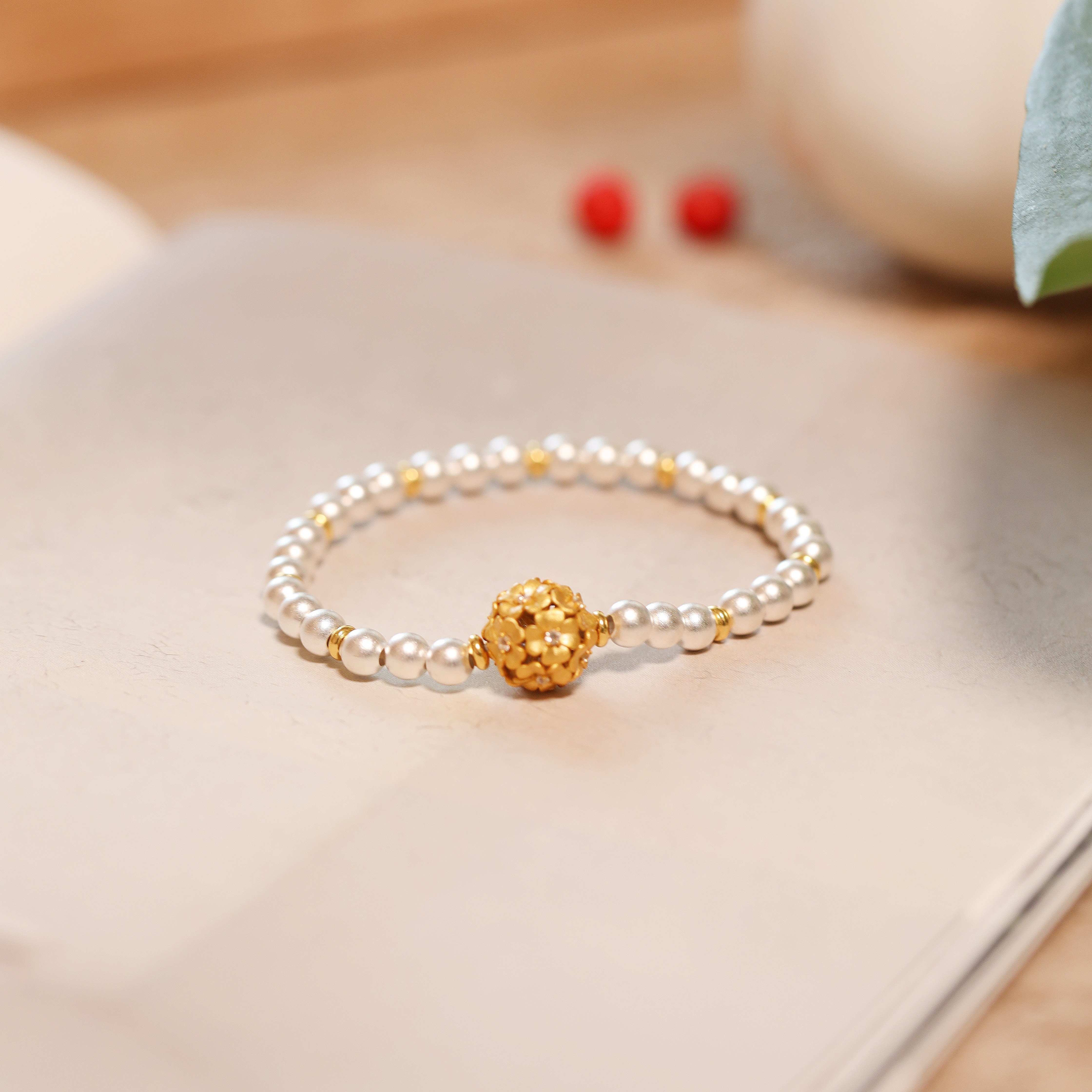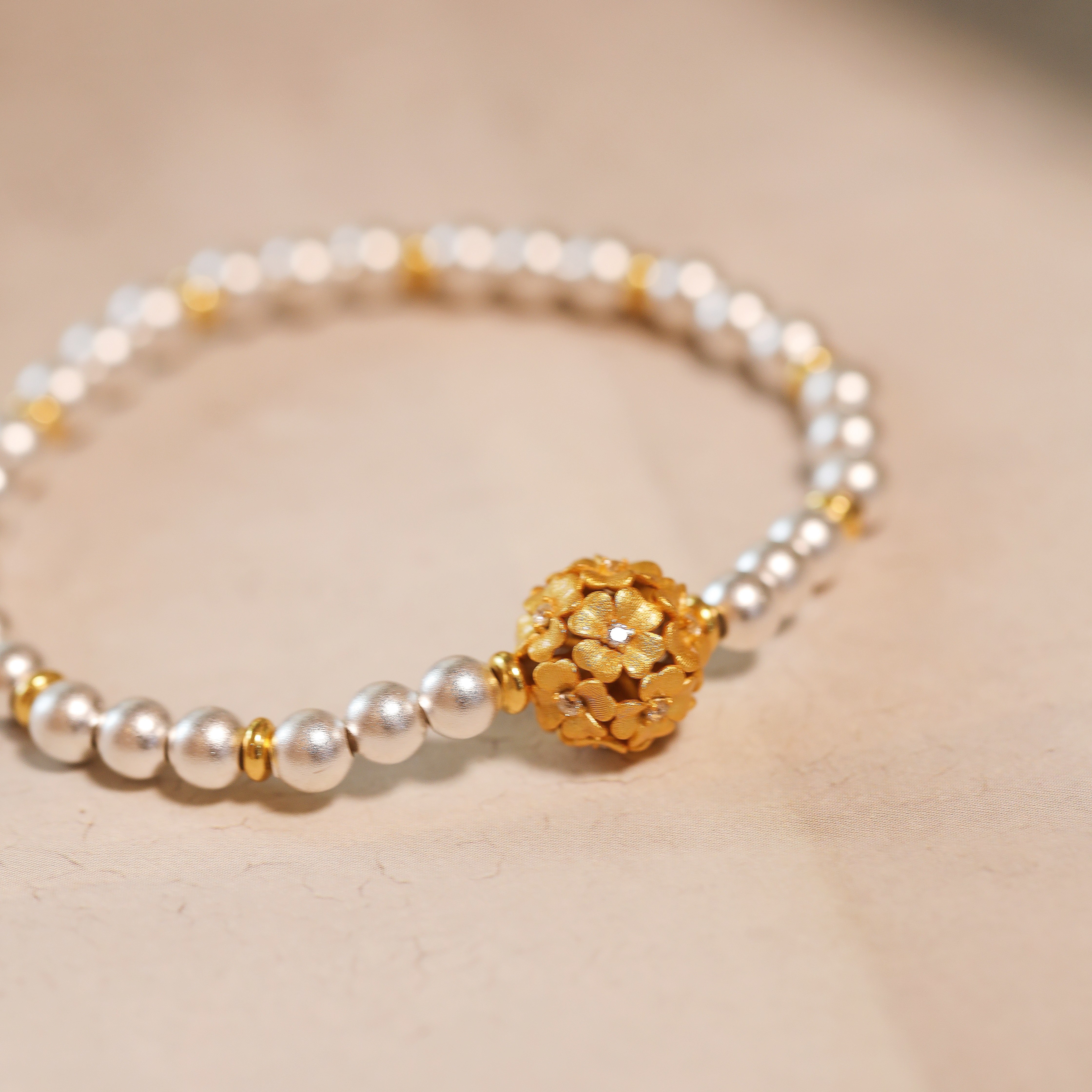 金蕊银澜|999足银新中式镂空繁花球转运珠圆珠纯银手链女手饰礼物