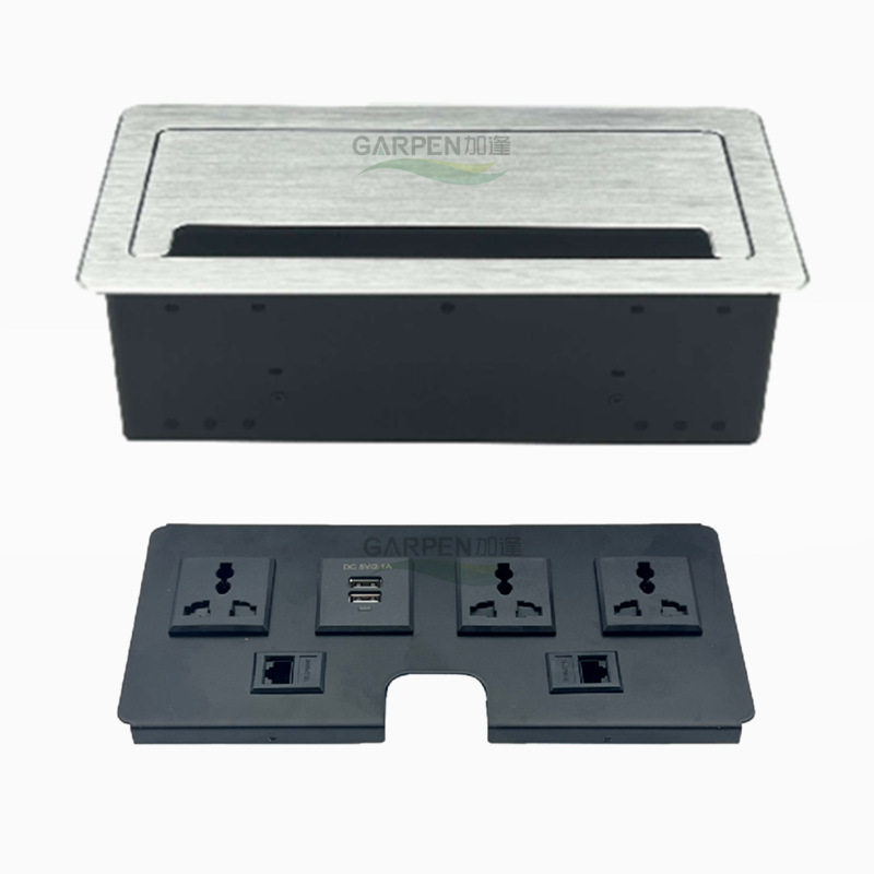 加逢 多媒体桌面插座弹起式多功能信息盒办公会议台面翻盖线盒