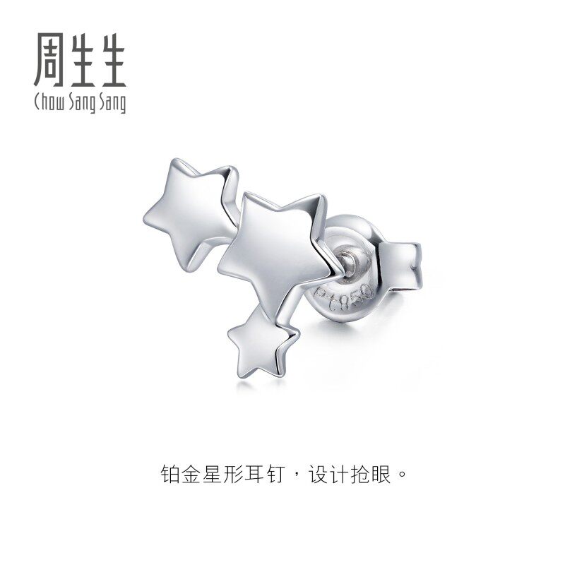 周生生LOVE DECODE耳钉PT950铂金繁星单只耳钉89814E