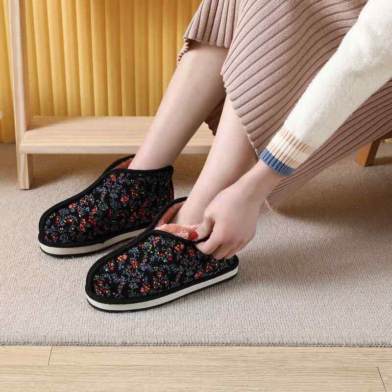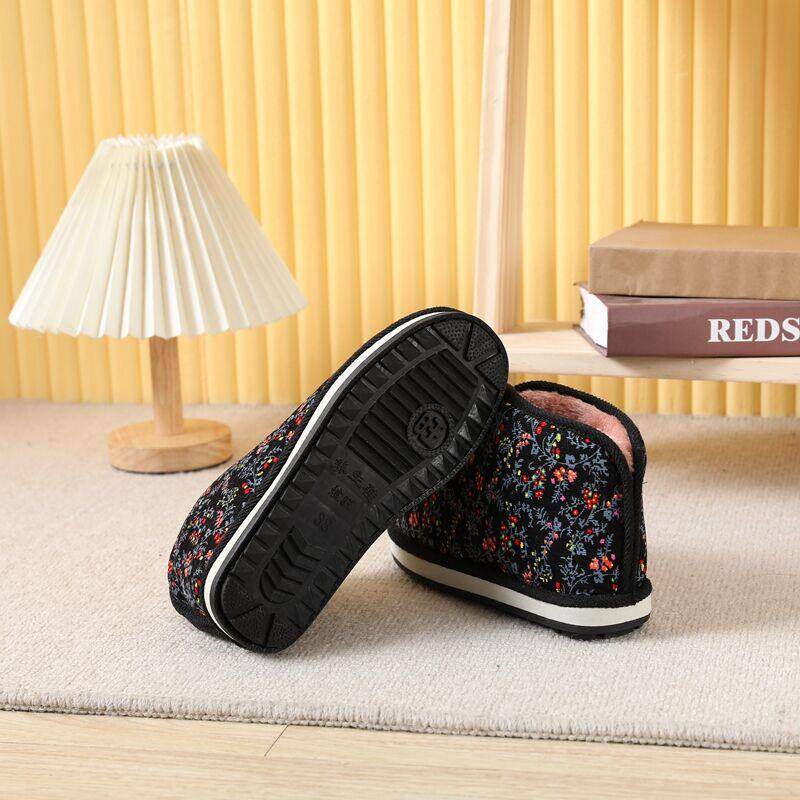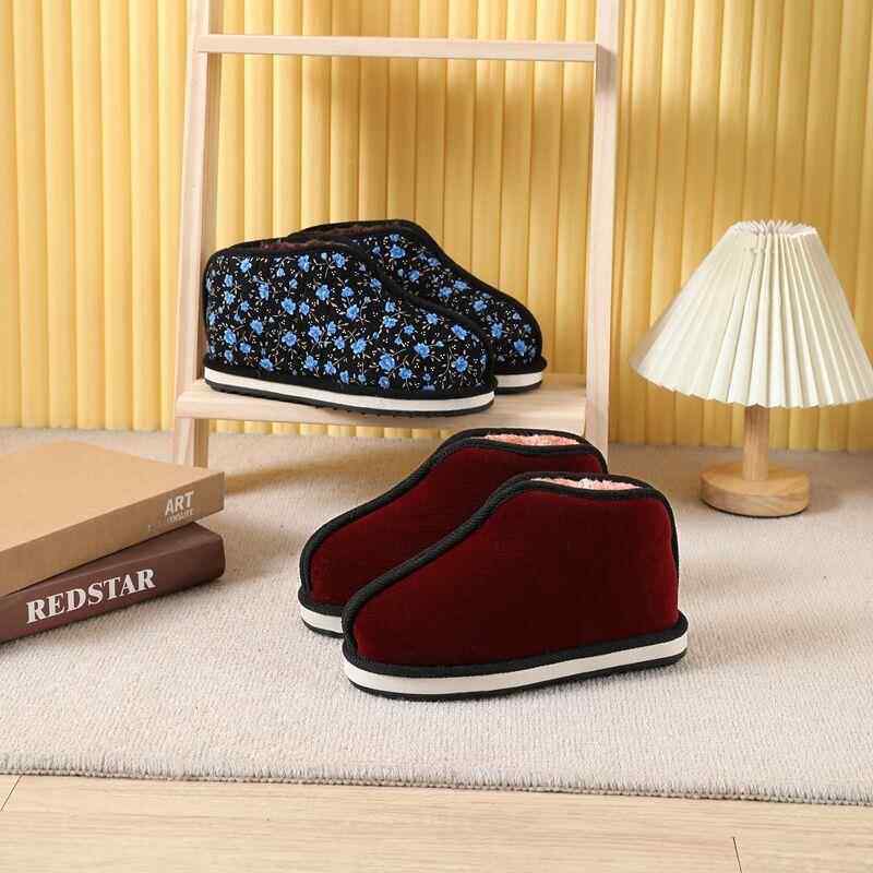 传统两片瓦蚌壳手工棉鞋冬季加绒加厚防滑橡胶底中老年居家保暖鞋