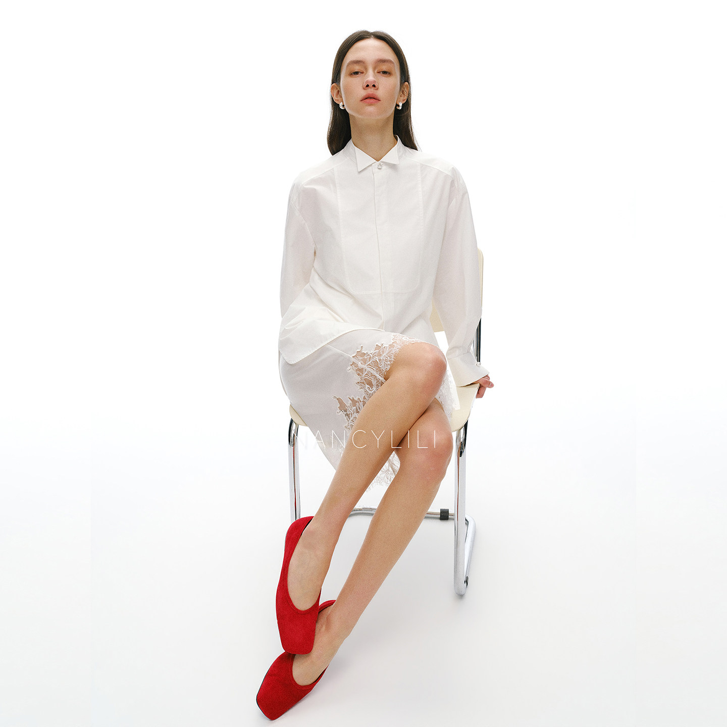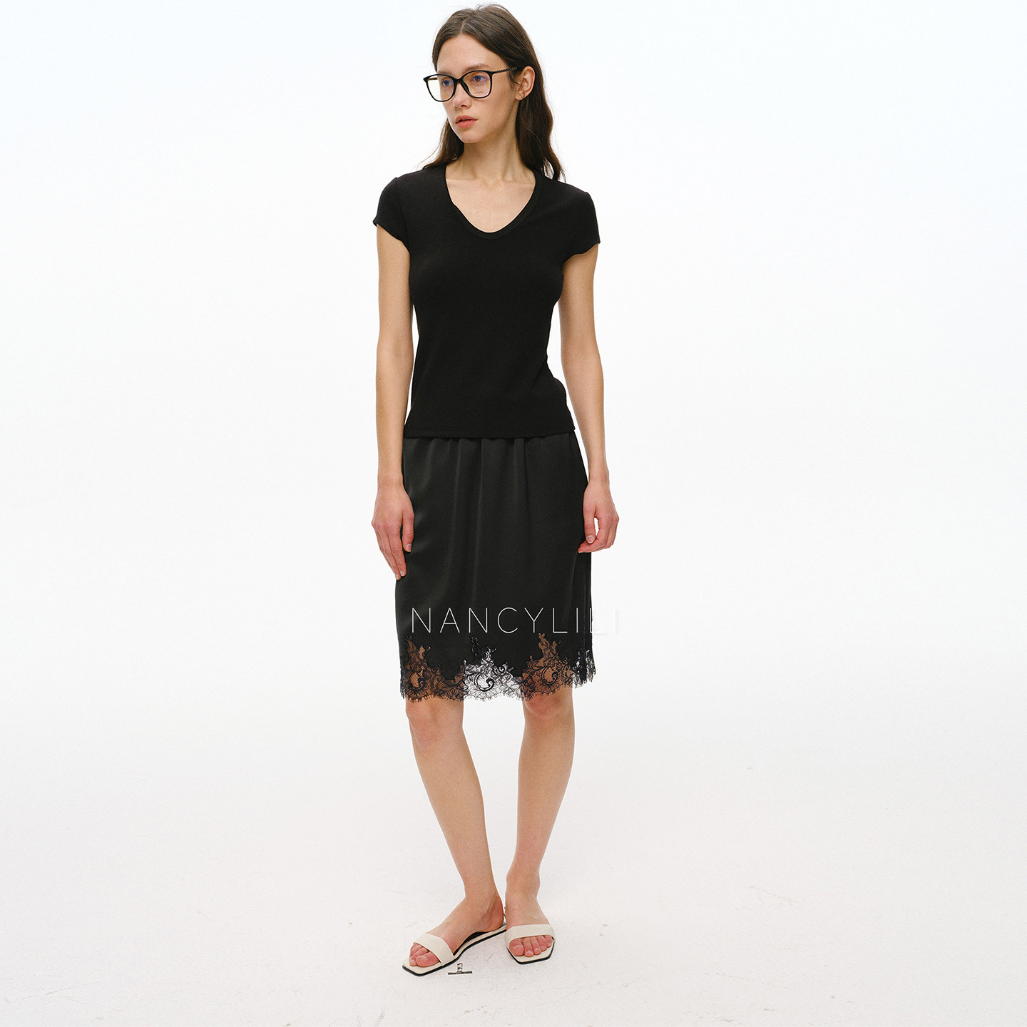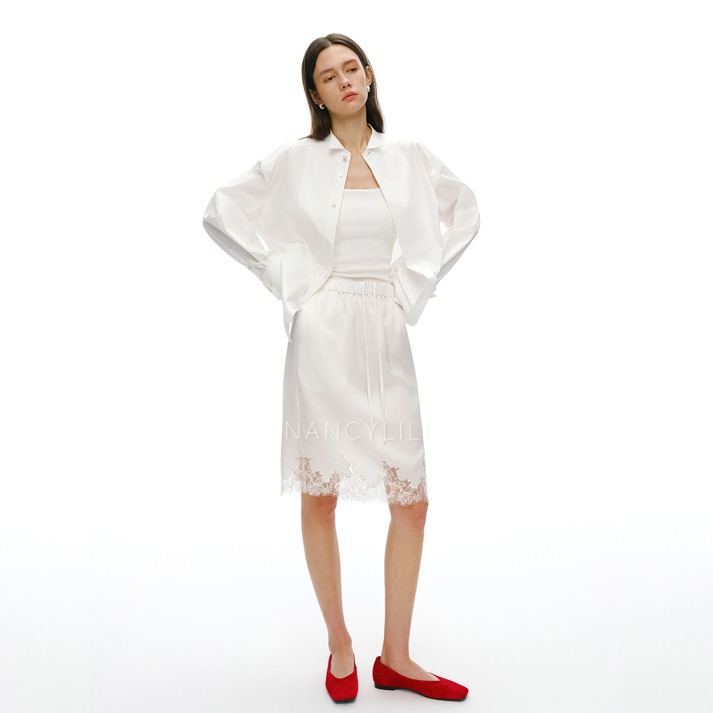 nancylili新款白色黑色花边刺绣镂空直筒蕾丝半裙半身裙短裙女