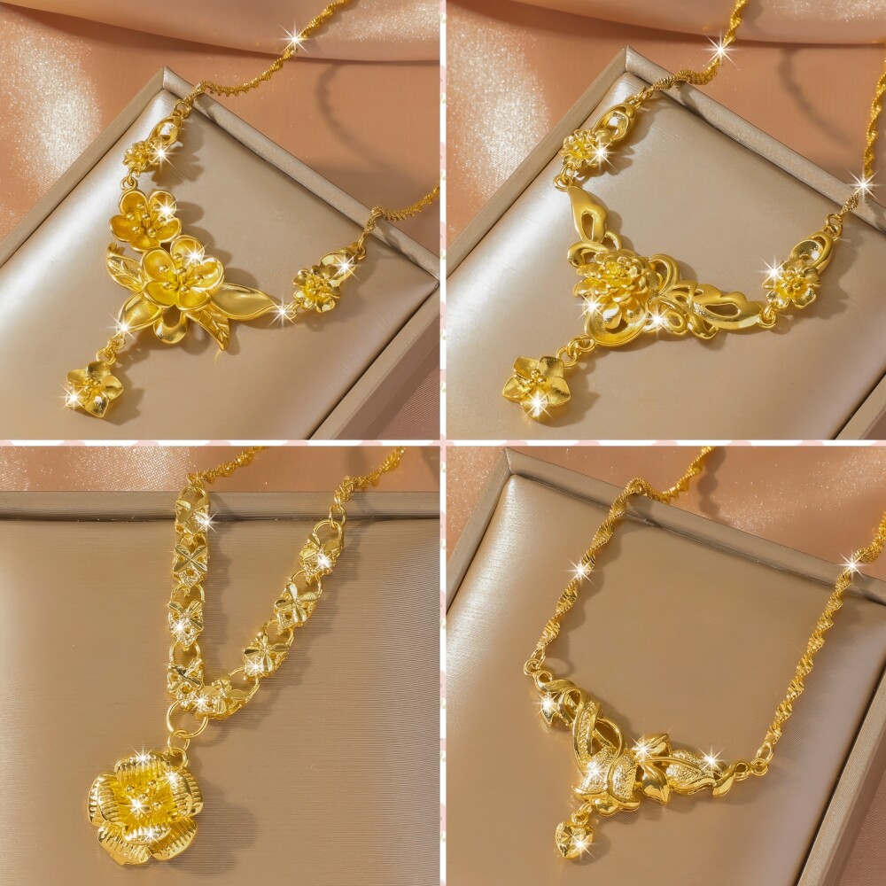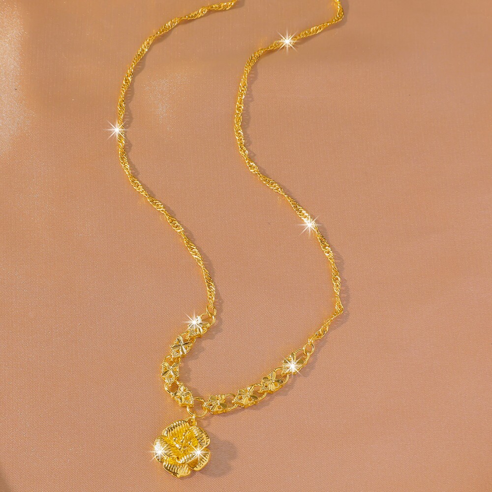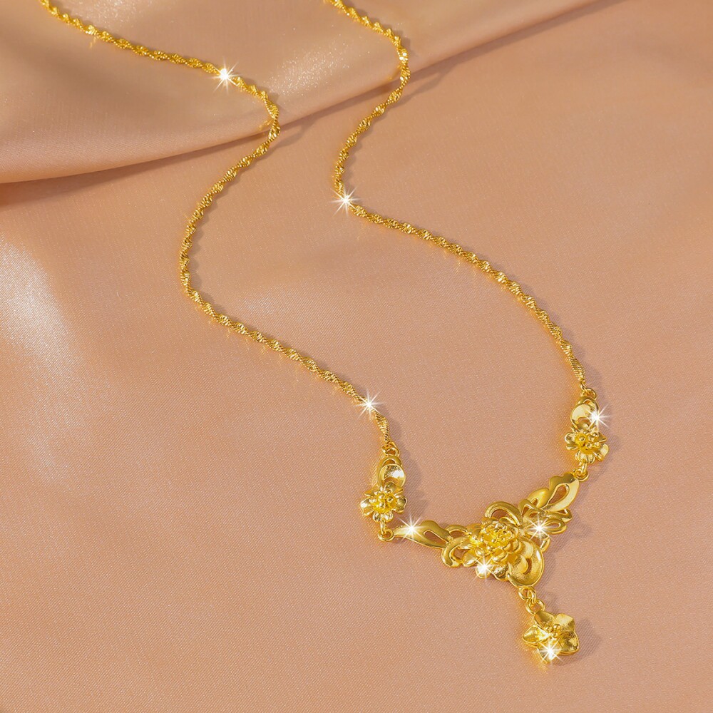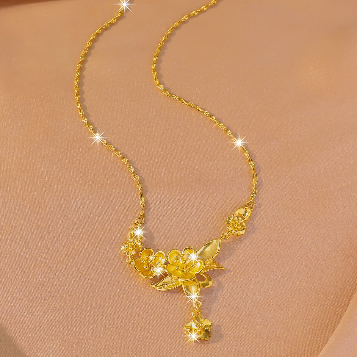 轻奢沙金首饰镀24k仿真黄金色繁花似锦水波花朵项链女气质高级感
