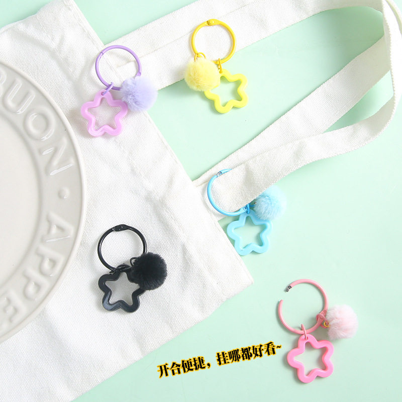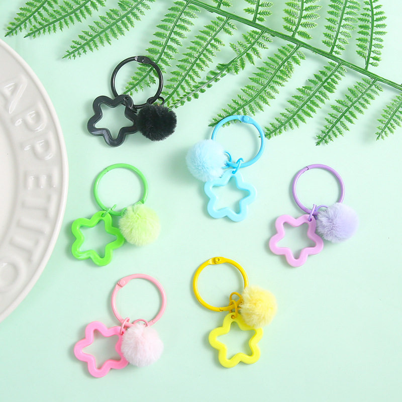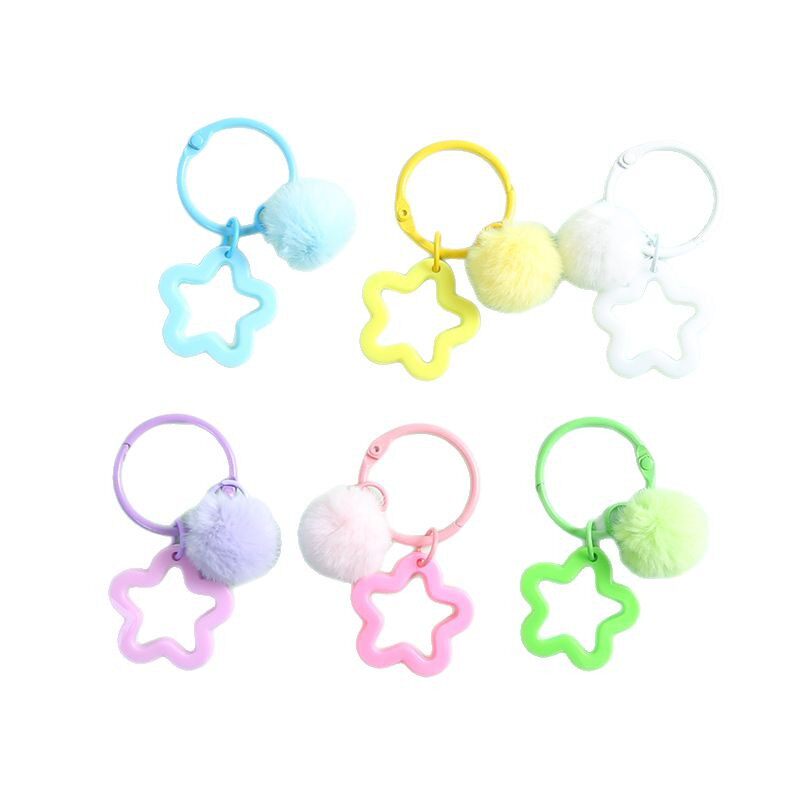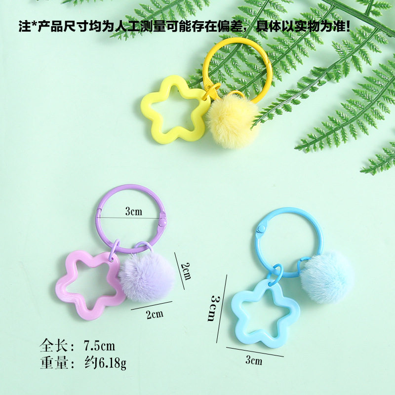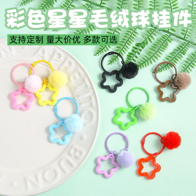 彩色五角星钥匙扣挂件手工diy毛绒球卡圈挂饰小清新女包包饰品