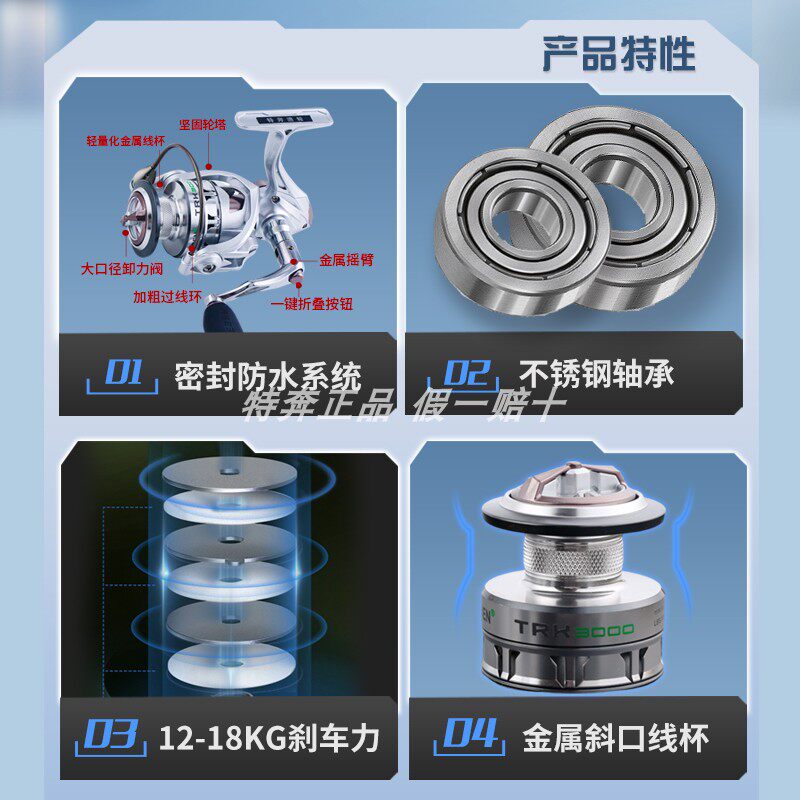 特奔渔轮TRK无间隙纺车轮海钓路亚鱼线轮抛竿远投矶钓路滑钓鱼轮