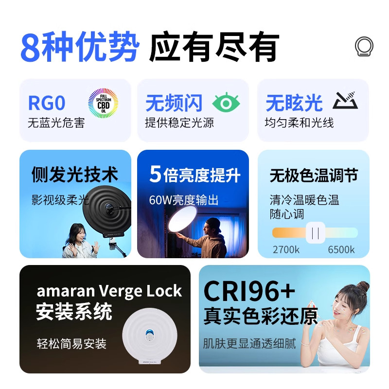 Aputure/爱图仕 amaran艾蒙拉Verge Max 桌面直播补光灯 桌搭主播美颜专用柔光灯 护眼便携视频拍摄摄影灯