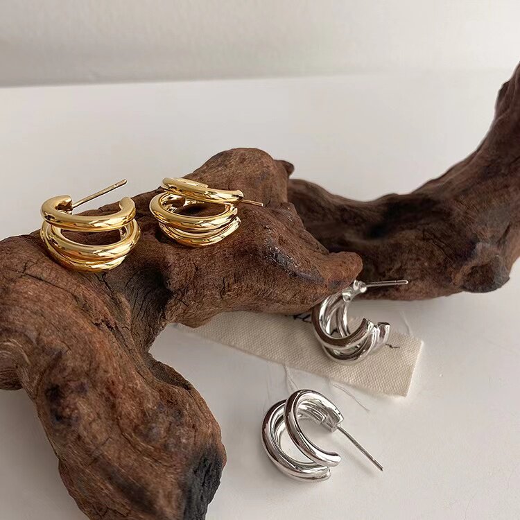 不会恋爱的我们赵江月金晨同款耳环2022年新款潮三个圈圈圆圈耳饰