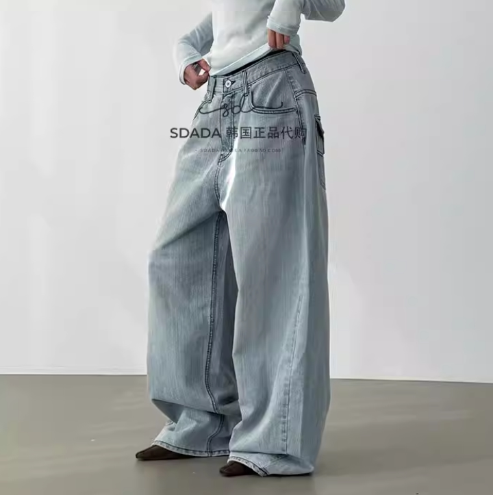 韩国代购26A/W back pocket natural washed jean 设计师牛仔裤