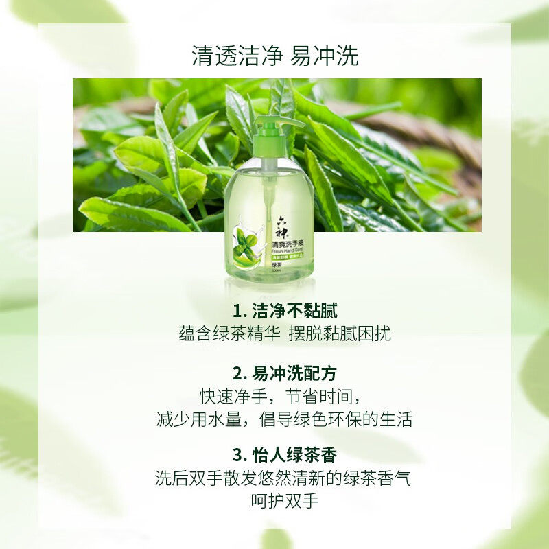 六神洗手液绿茶清爽500ml植物精华清香舒爽温和易冲洗家用装正品