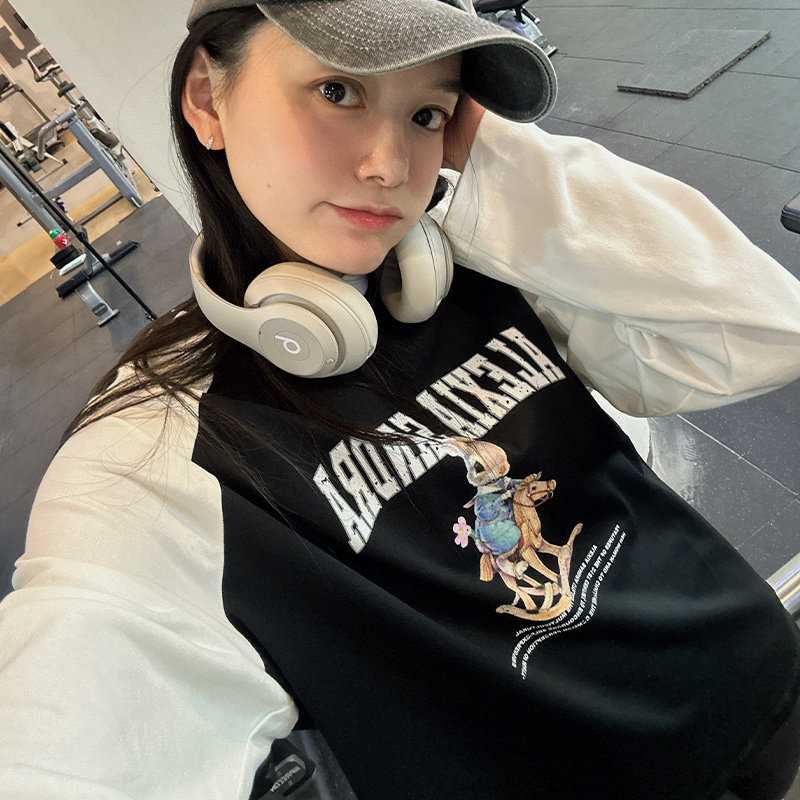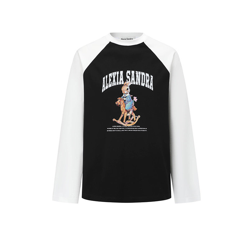 Alexia Sandra白鹿/董璇同款女士撞色经典木马兔子长袖T恤301261