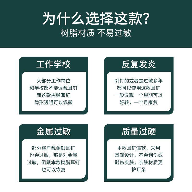 树脂耳棒女适合养新耳洞隐形防堵塑料耳针学生耳钉透明耳棍消炎