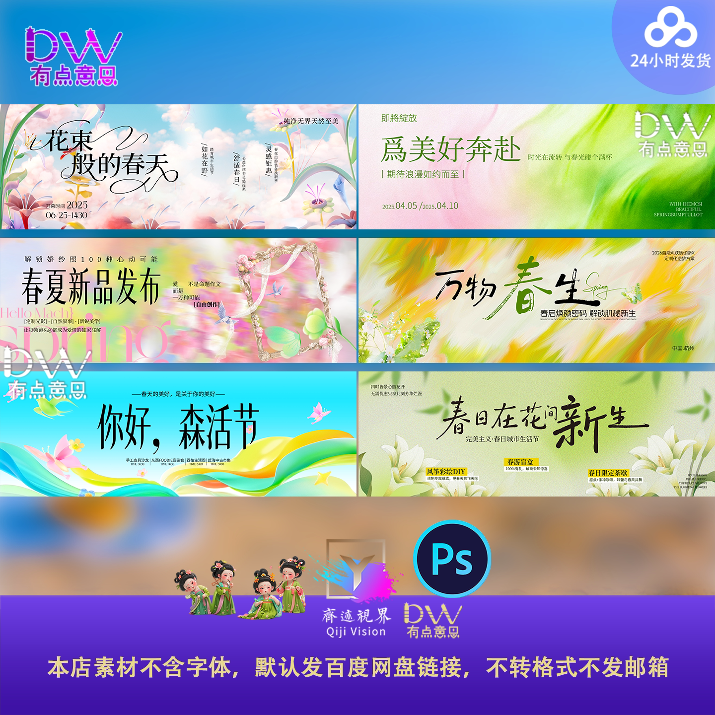 春夏主题清新文艺活动海报模板PSD设计素材花卉自然风主视觉KV屏