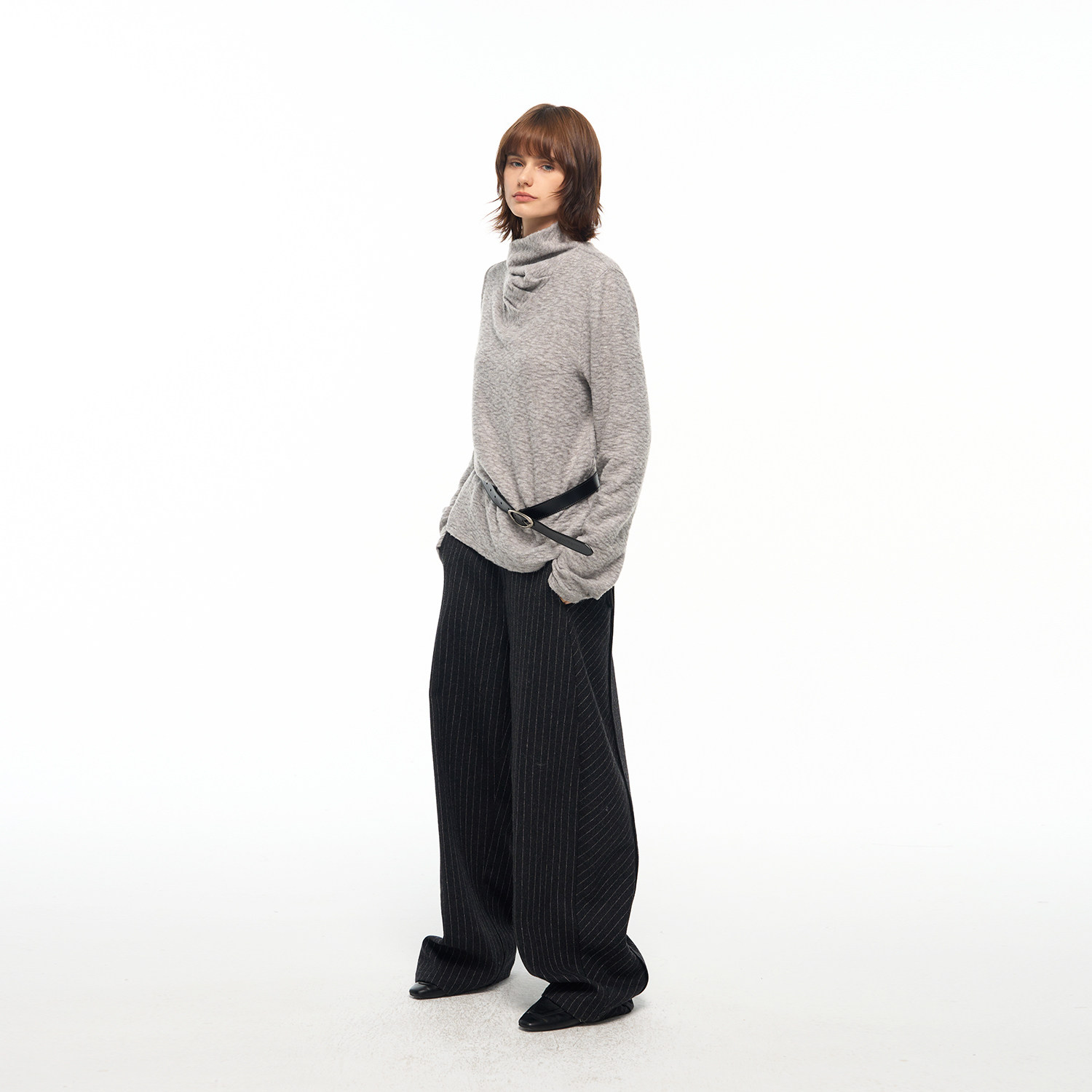 【羊毛廓形】BiLLconch羊毛混纺条纹裤宽松阔腿休闲长裤秋冬新款