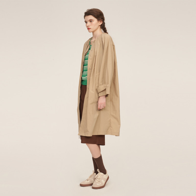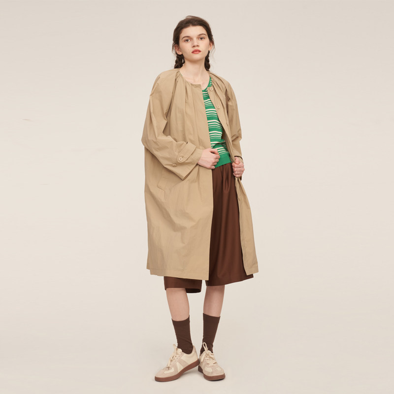 SUUYUUWANG原创设计领口打褶长款外套