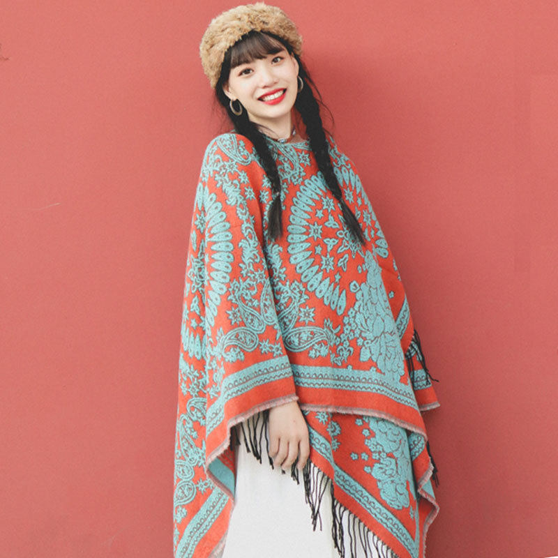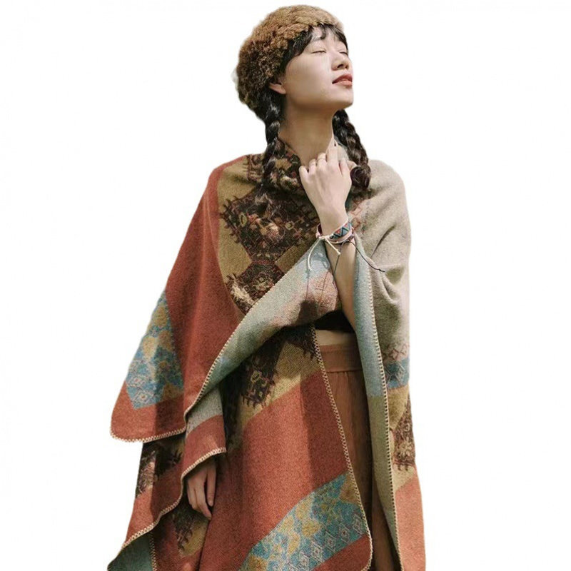 春夏民族风披肩云南旅游大斗篷空调房披肩仿羊绒围巾保暖外搭