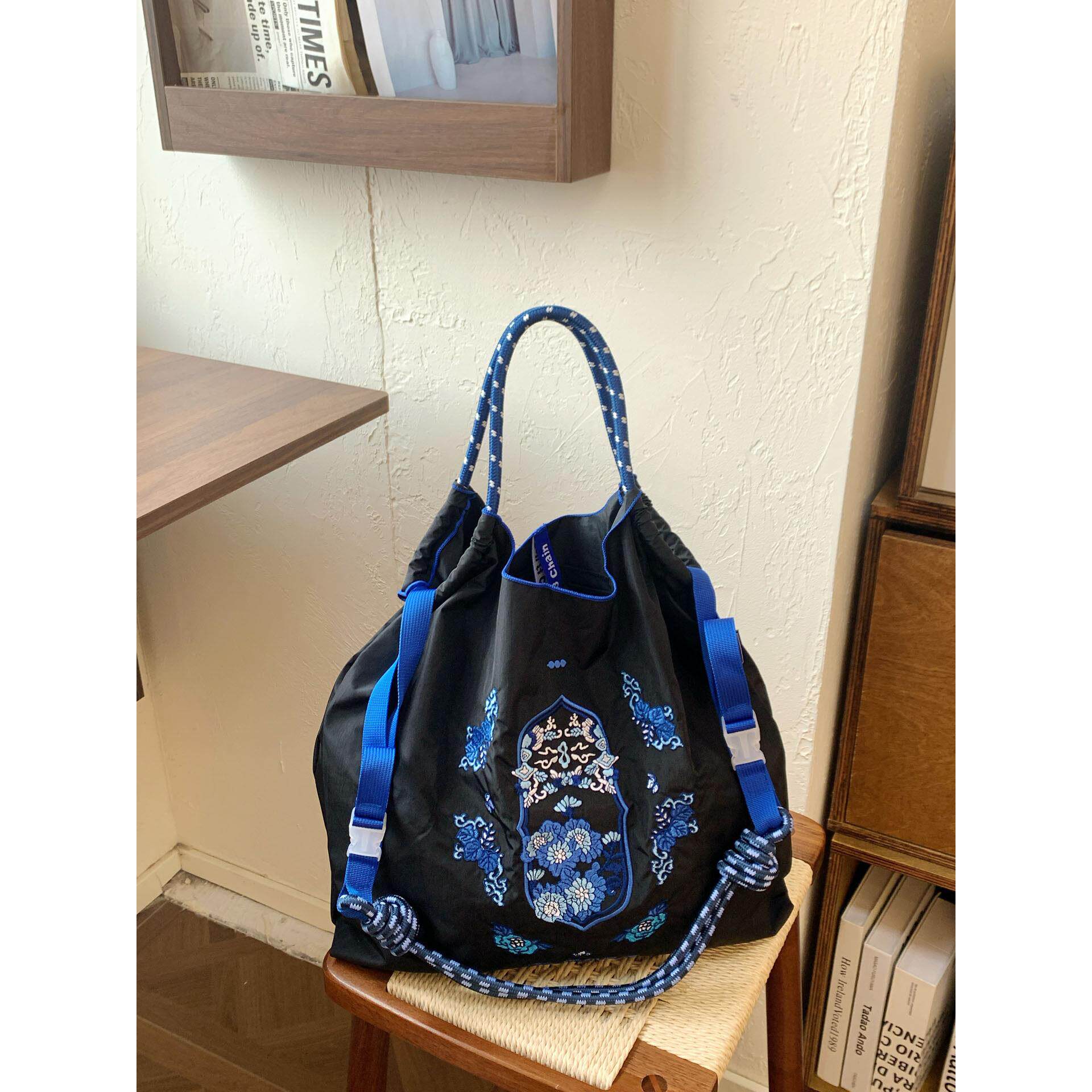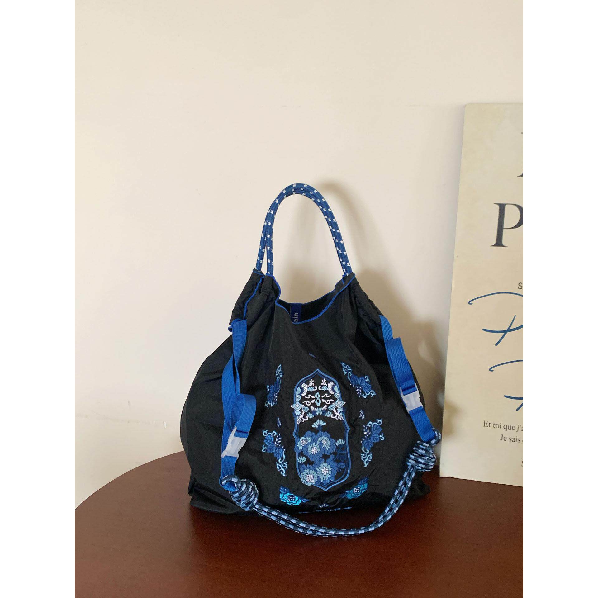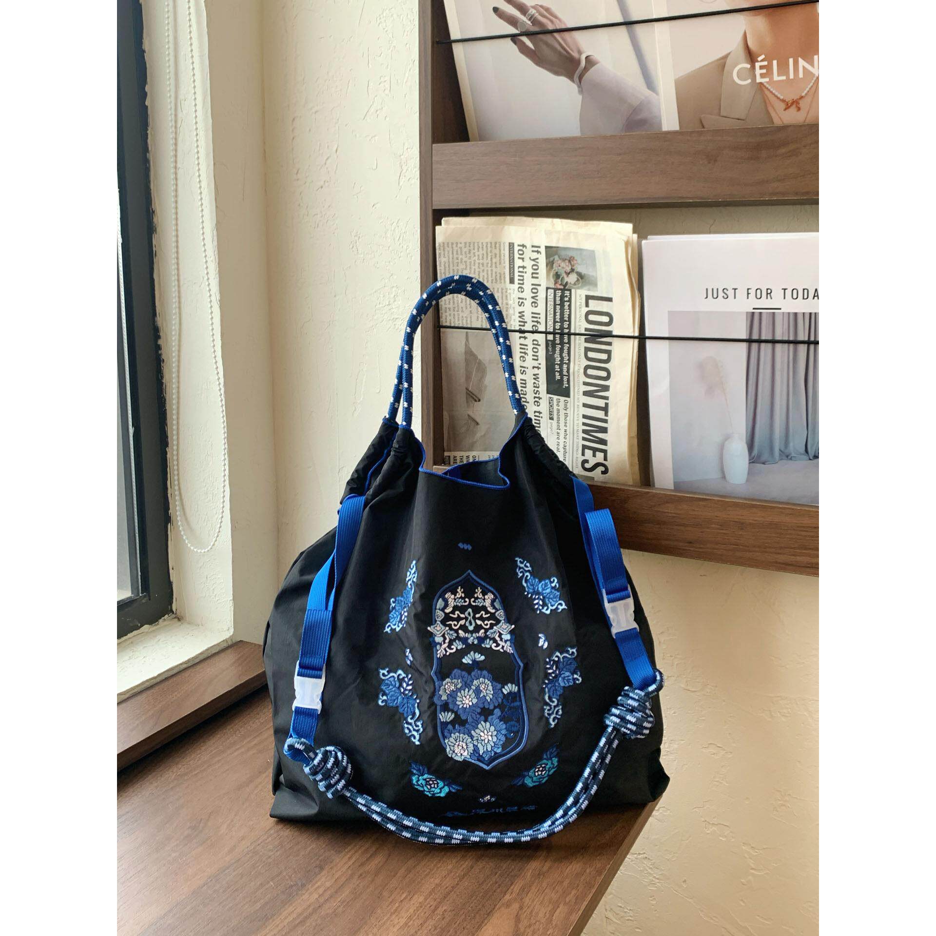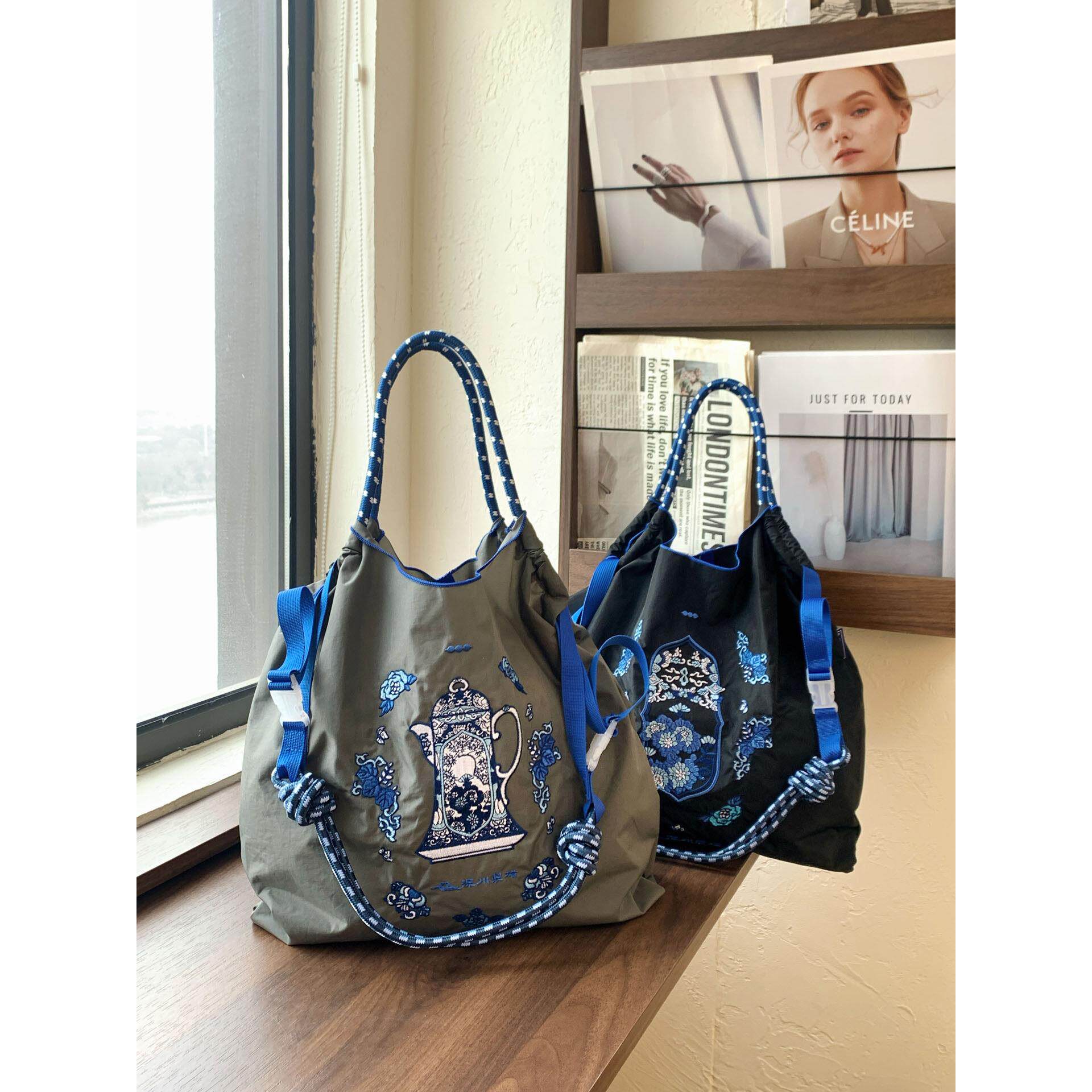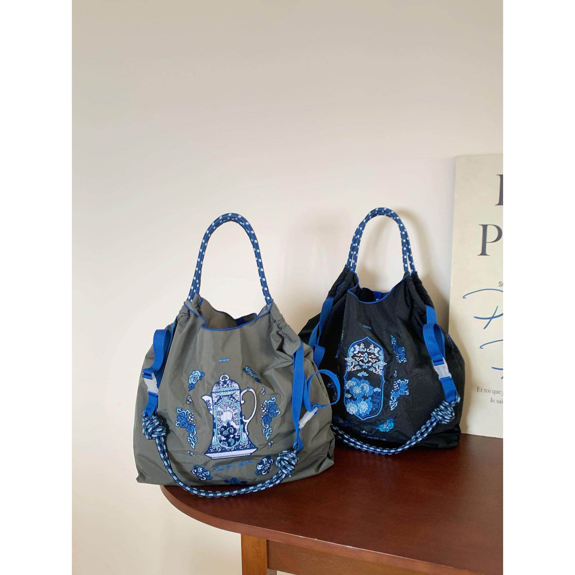 日本同款ball chain青花瓷刺绣购物袋女大容量单肩斜挎包包环保袋