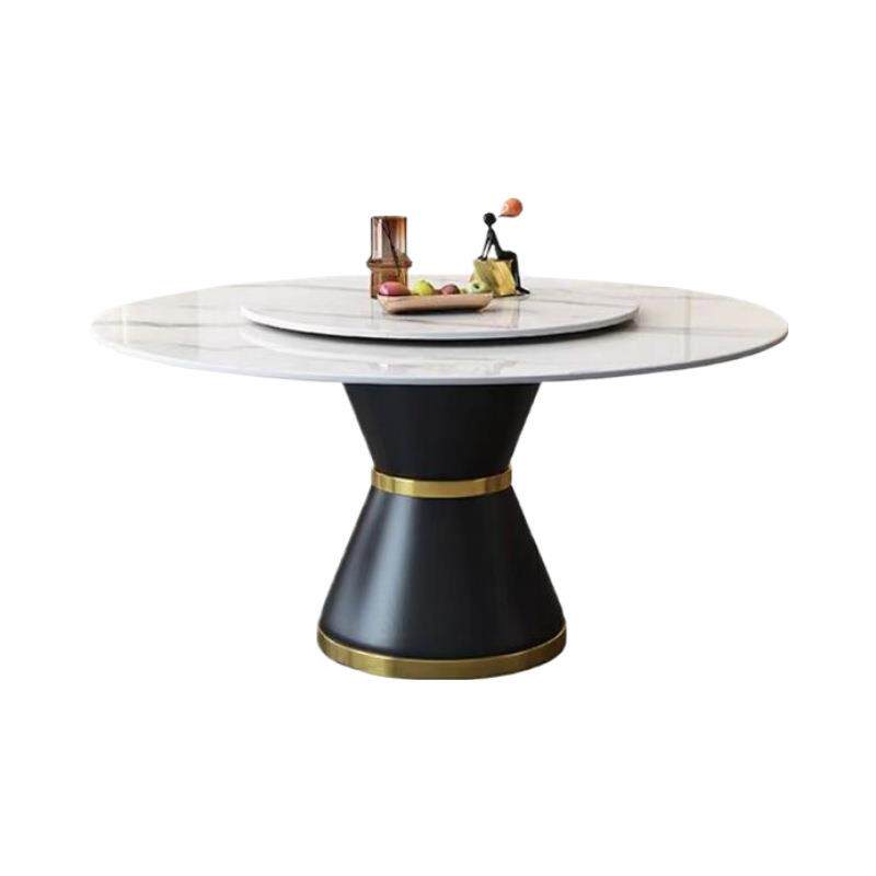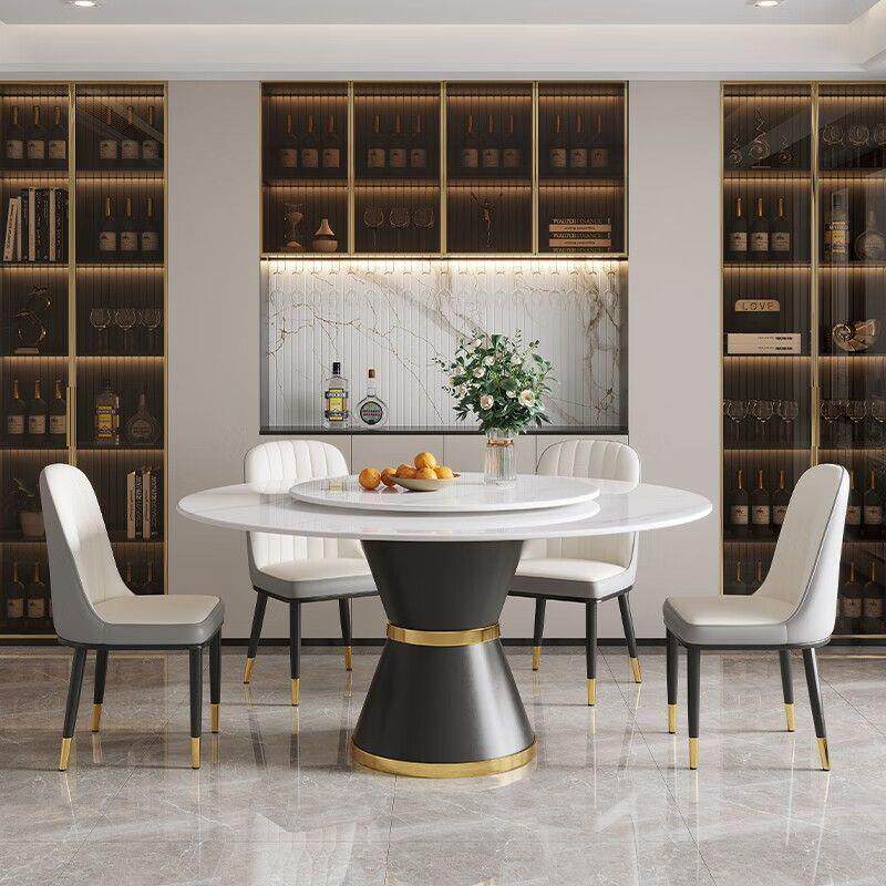 意式加厚岩板餐桌椅餐桌组合圆桌现代简约轻奢小户型家用圆形转盘