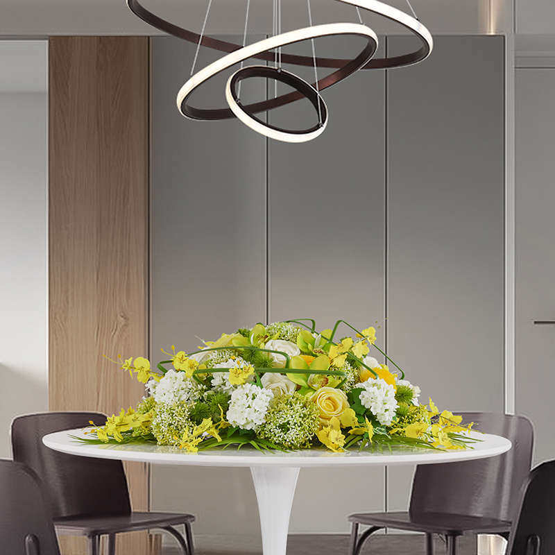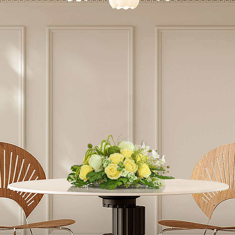大圆桌红色餐桌花酒店餐桌转盘中间摆花餐桌圆形仿真台花装饰假花