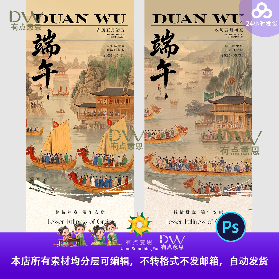 国潮水墨古风端午节怀旧赛龙舟活动宣传海报展馆背景高端酒店素材