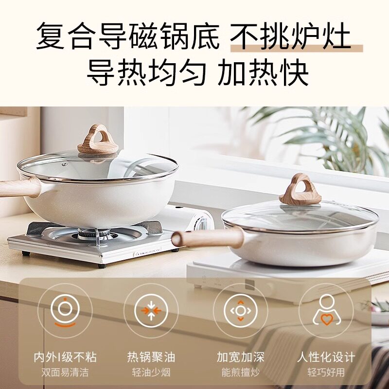 九阳平底锅不粘锅煎锅钛锅家用炒菜麦饭石色电磁炉煤气灶专用锅炊