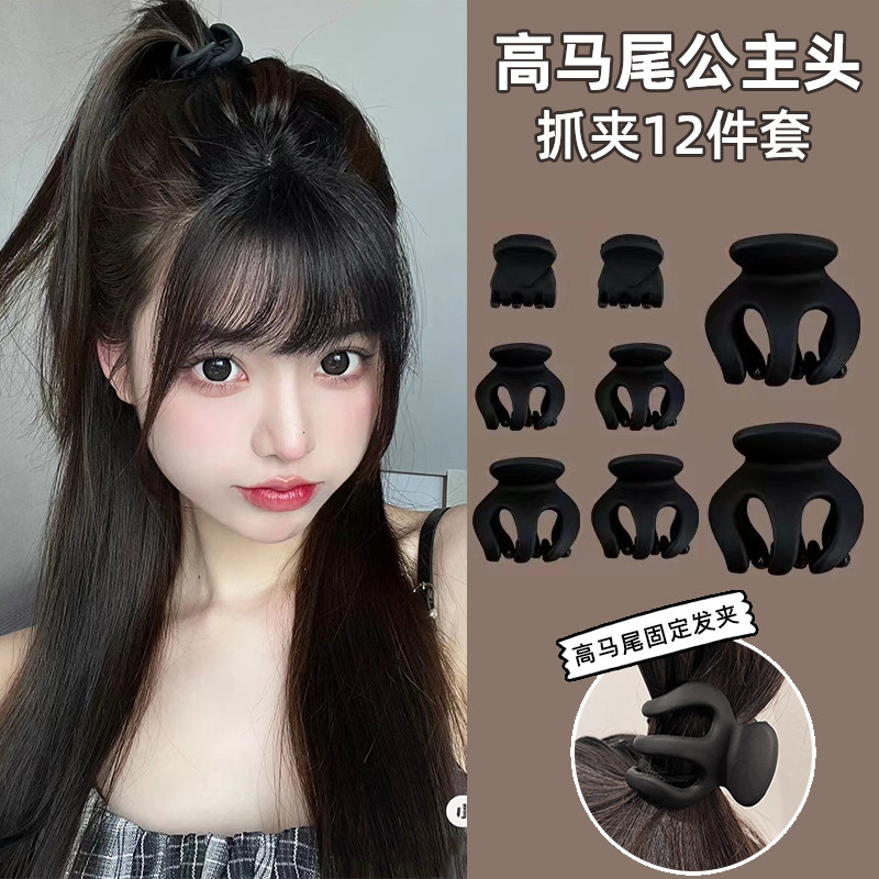 丸子头发夹女后脑勺高马尾抓夹南瓜发卡盘发神器鲨鱼夹小夹子发饰