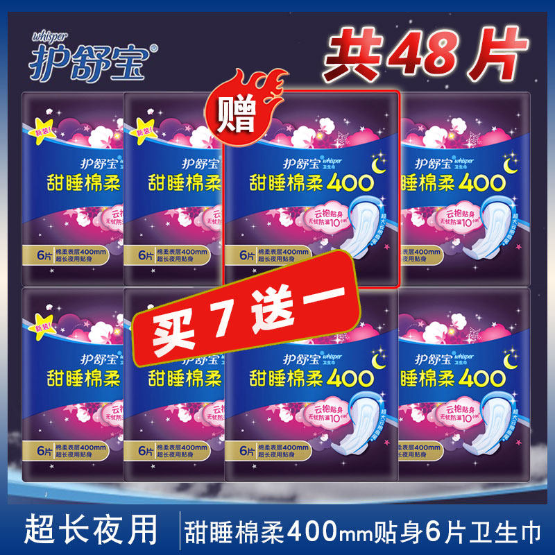 护舒宝卫生巾甜睡棉柔400mm6片*8包棉柔表层 宝洁官方姨妈巾