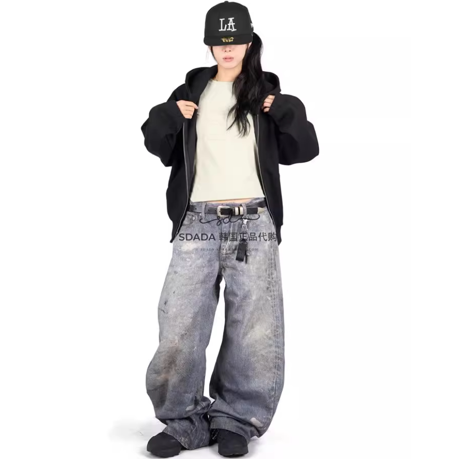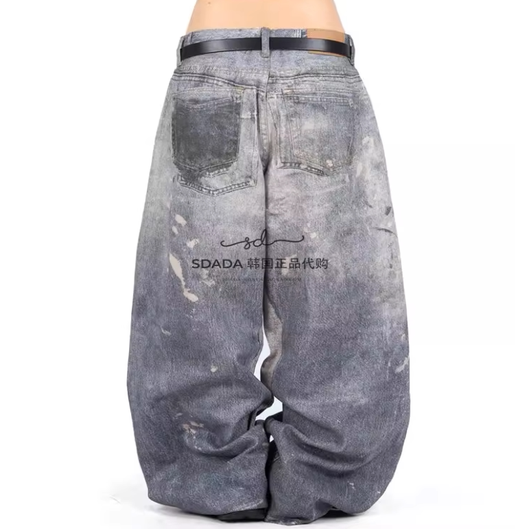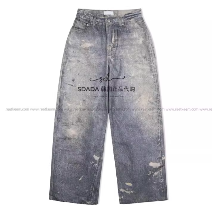 韩国代购25F/W PAINTED BLUR JEANS 喷漆做脏质感宽松牛仔裤